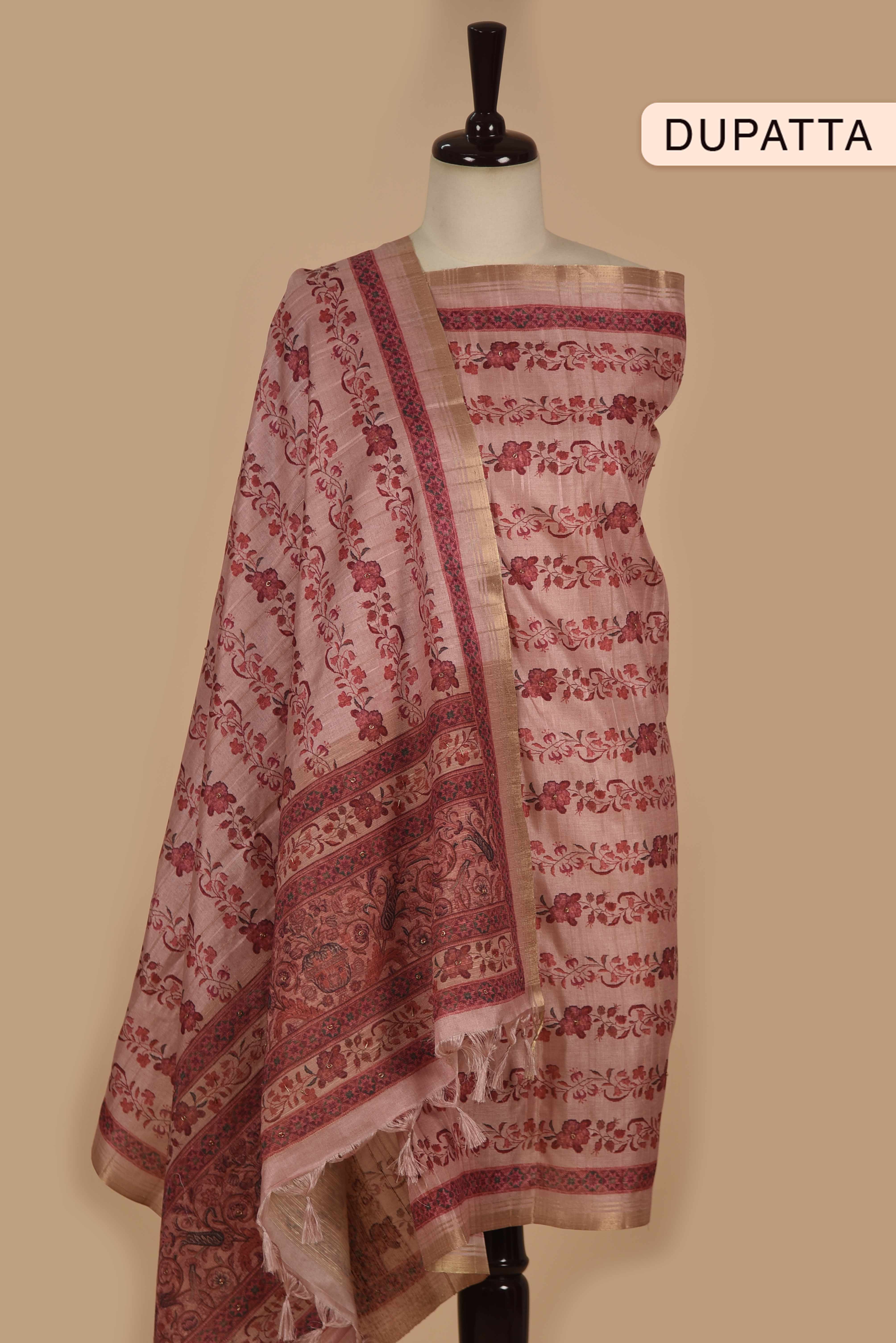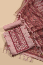 Pink Silk Blend Printed and Embellished Unstitched Suit Set with Silk Blend Dupatta