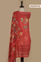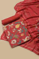 Red Cotton Printed Unstitched Suit Fabric Set With Printed Cotton Dupatta