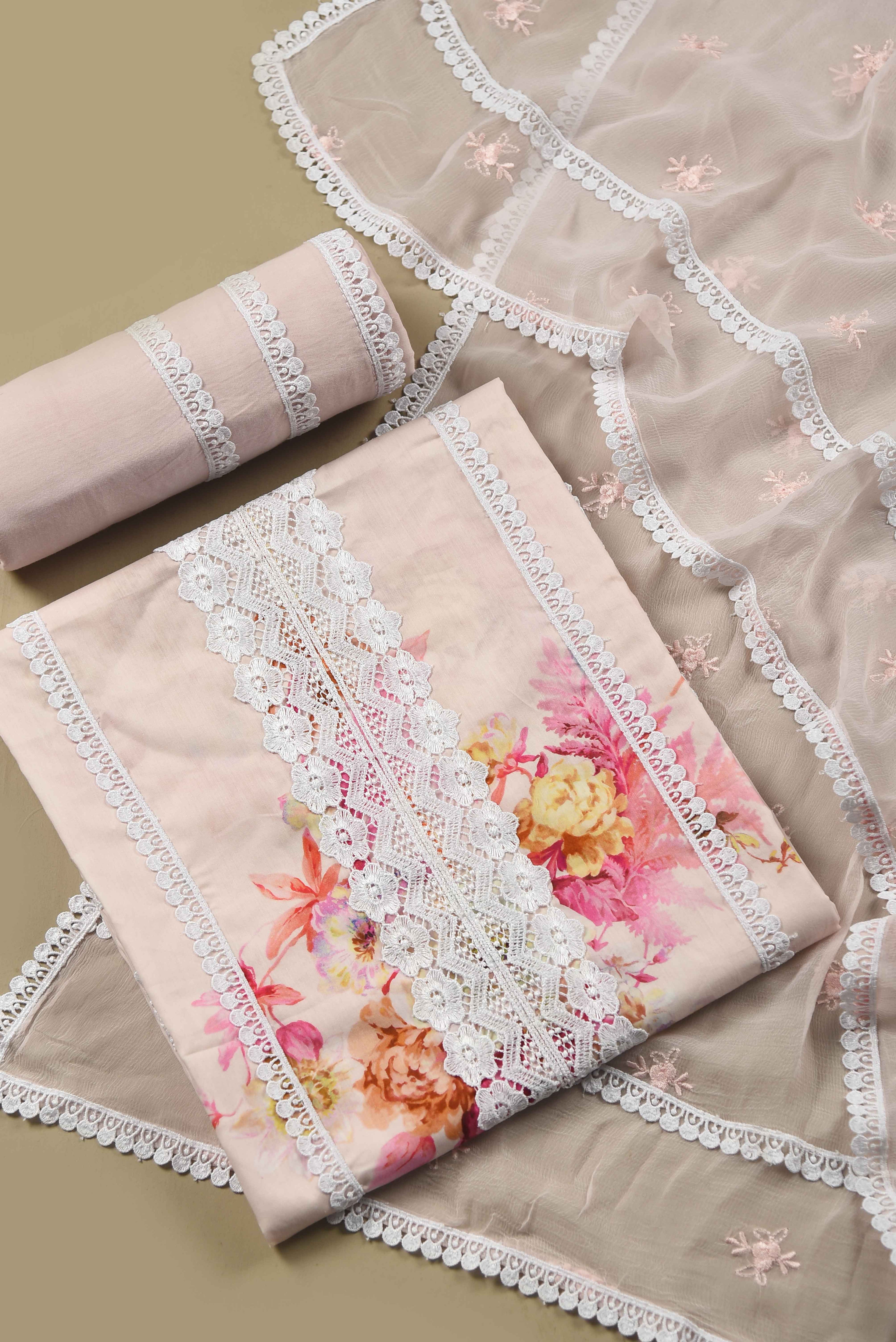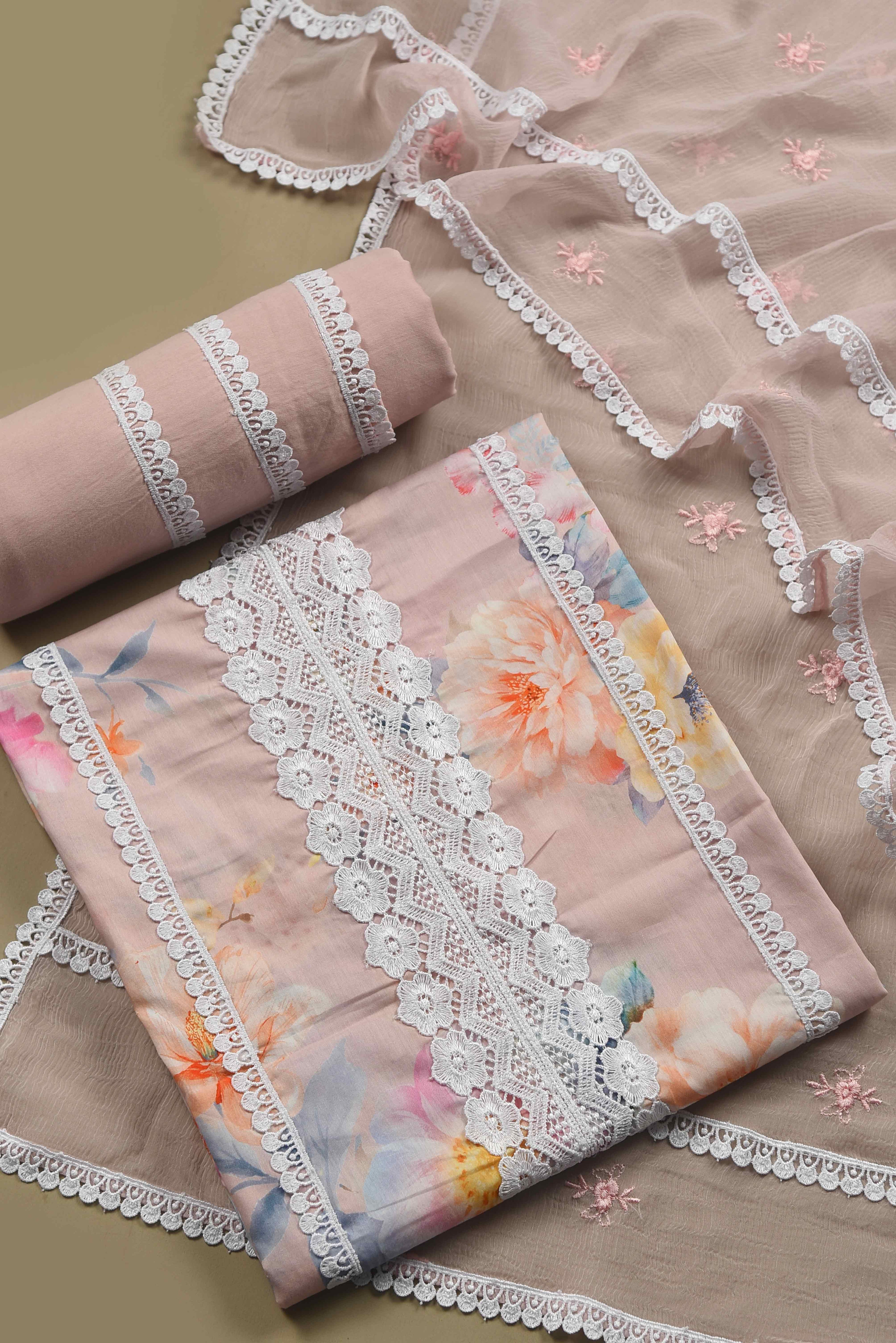 Unstitched suits represent a classic yet versatile option for gifting. Delve into our assortment of superior fabrics and dress materials, embellished with detailed embroideries and vivid patterns. Whether her style leans towards the traditional or contemporary, the unstitched suit fabric empowers her to craft a bespoke ensemble that aligns with her personal preferences.