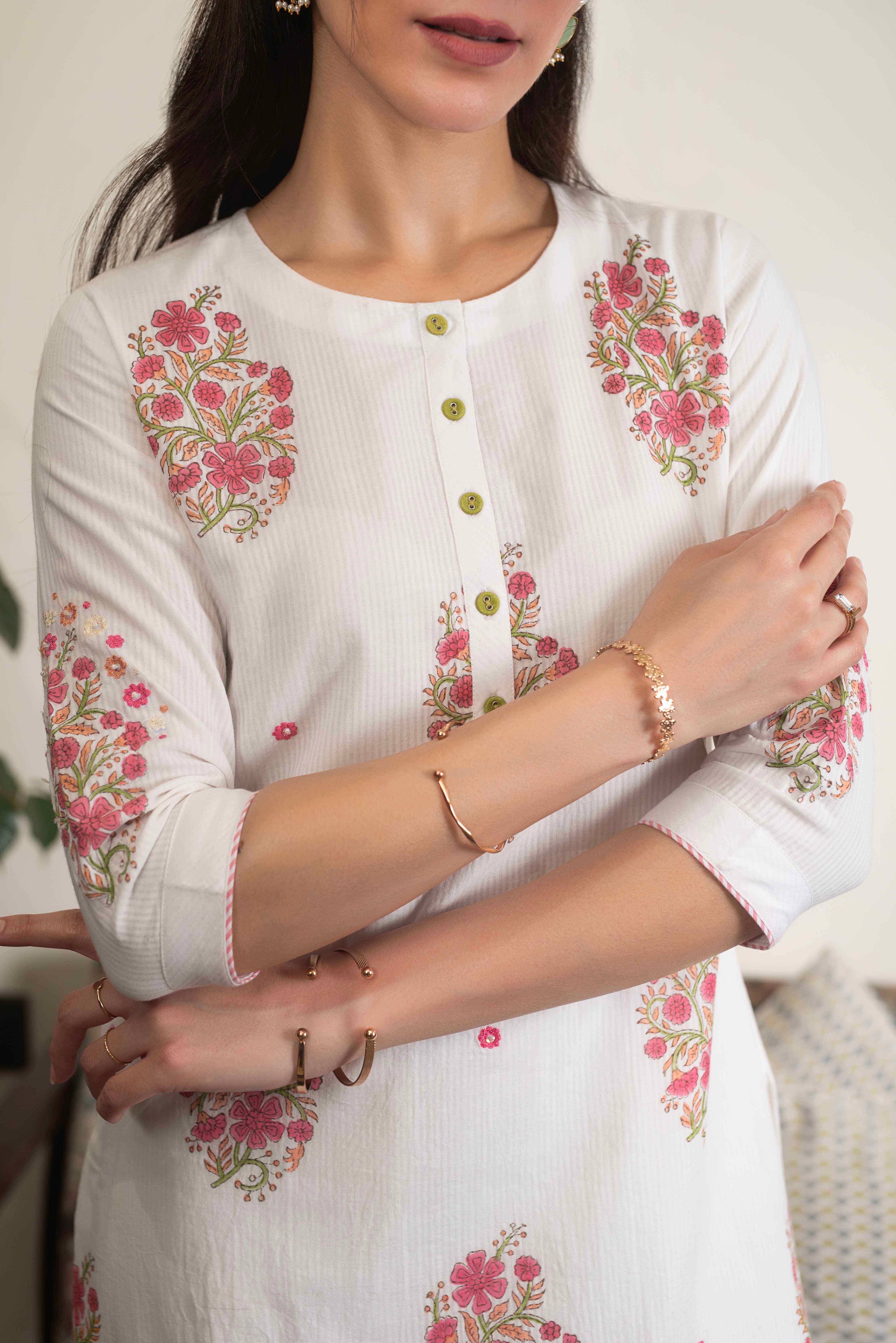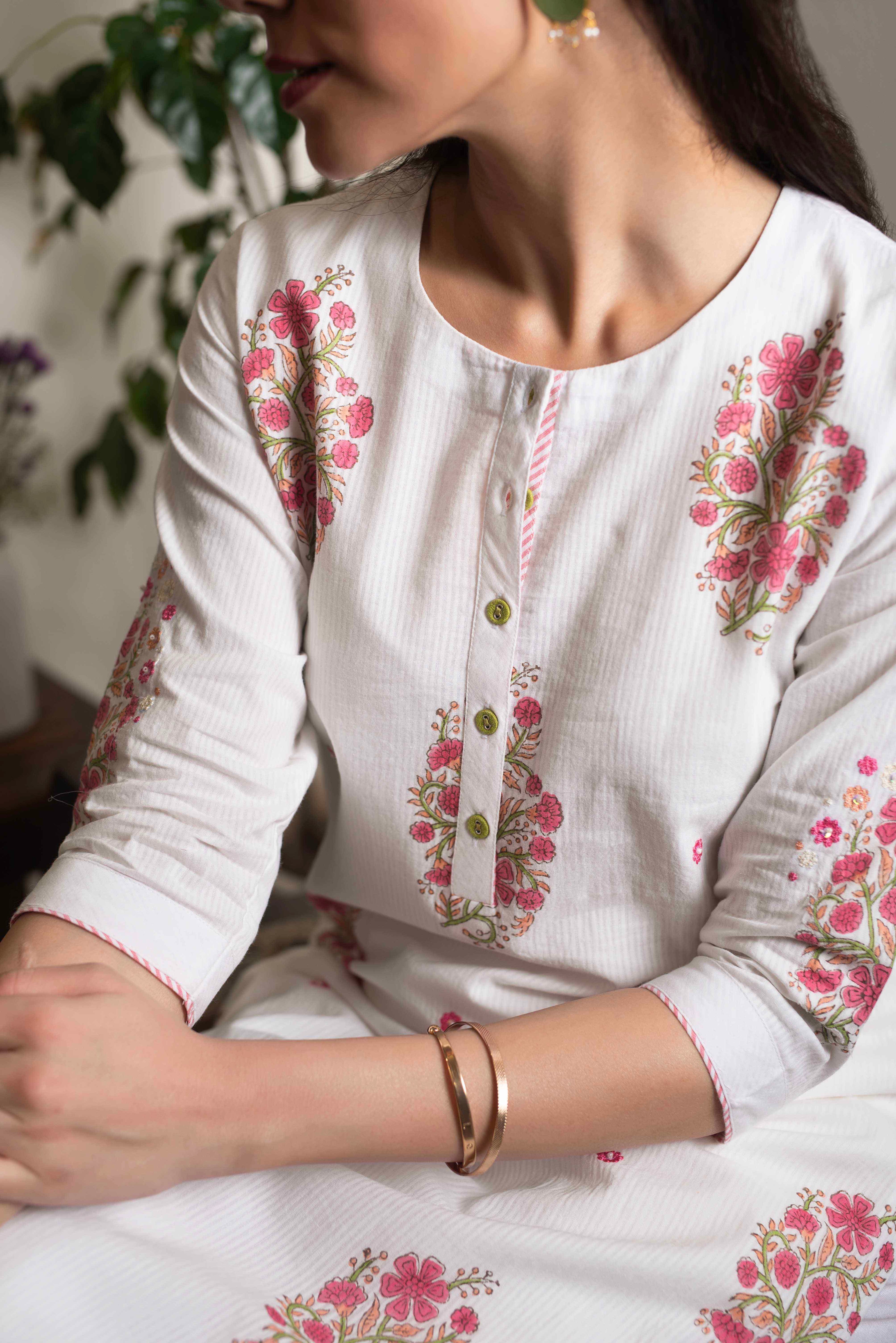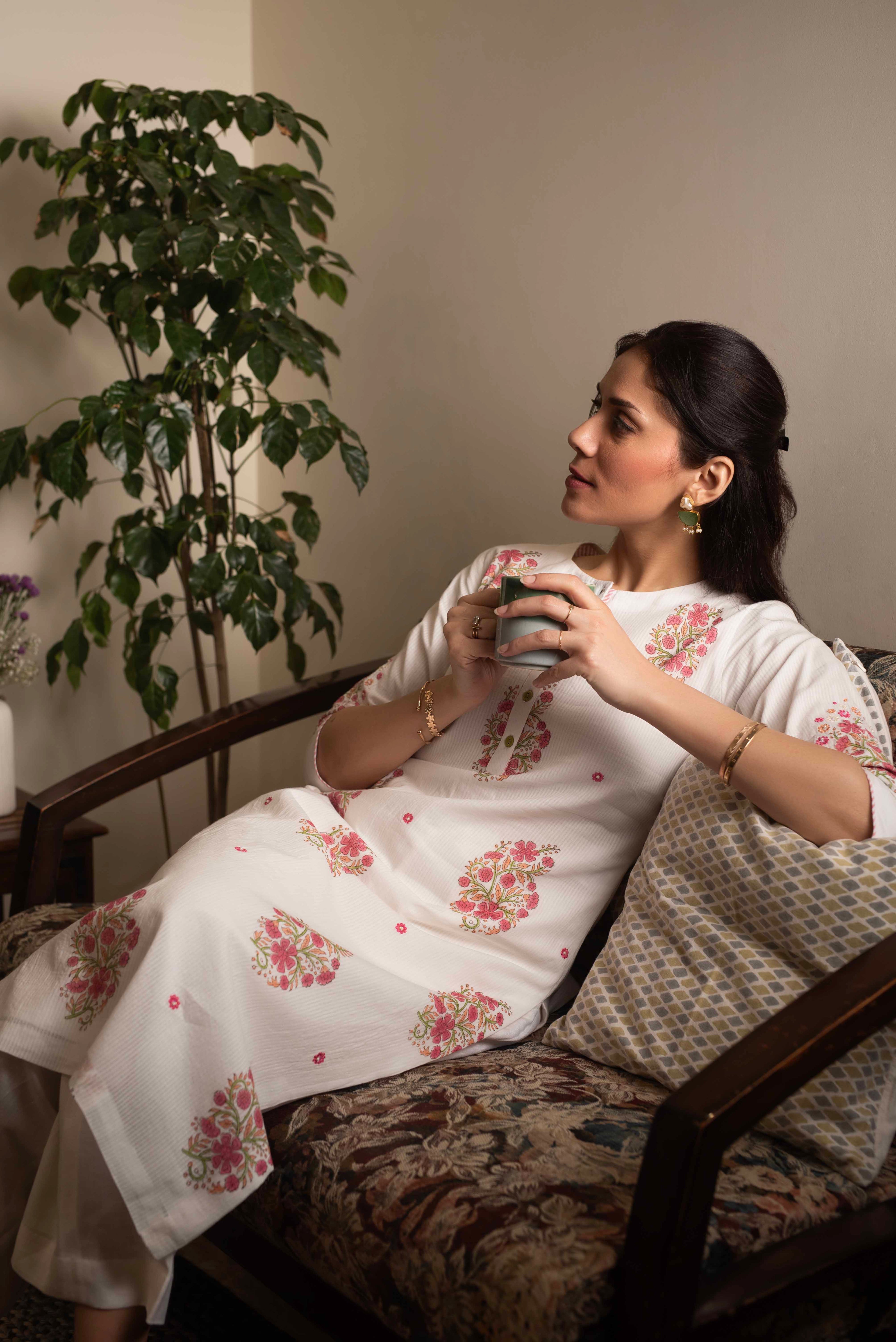Kurtas and kurta sets stand as a wardrobe staple for women of all ages. Our inventory spans a spectrum of designs, ranging from conventional to avant-garde, catering to a broad spectrum of style preferences. From the comfort of cotton kurtas to the elegance of muslin sets, these kurtas and kurta sets strike a harmonious balance between comfort and refinement.
