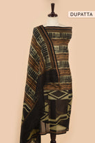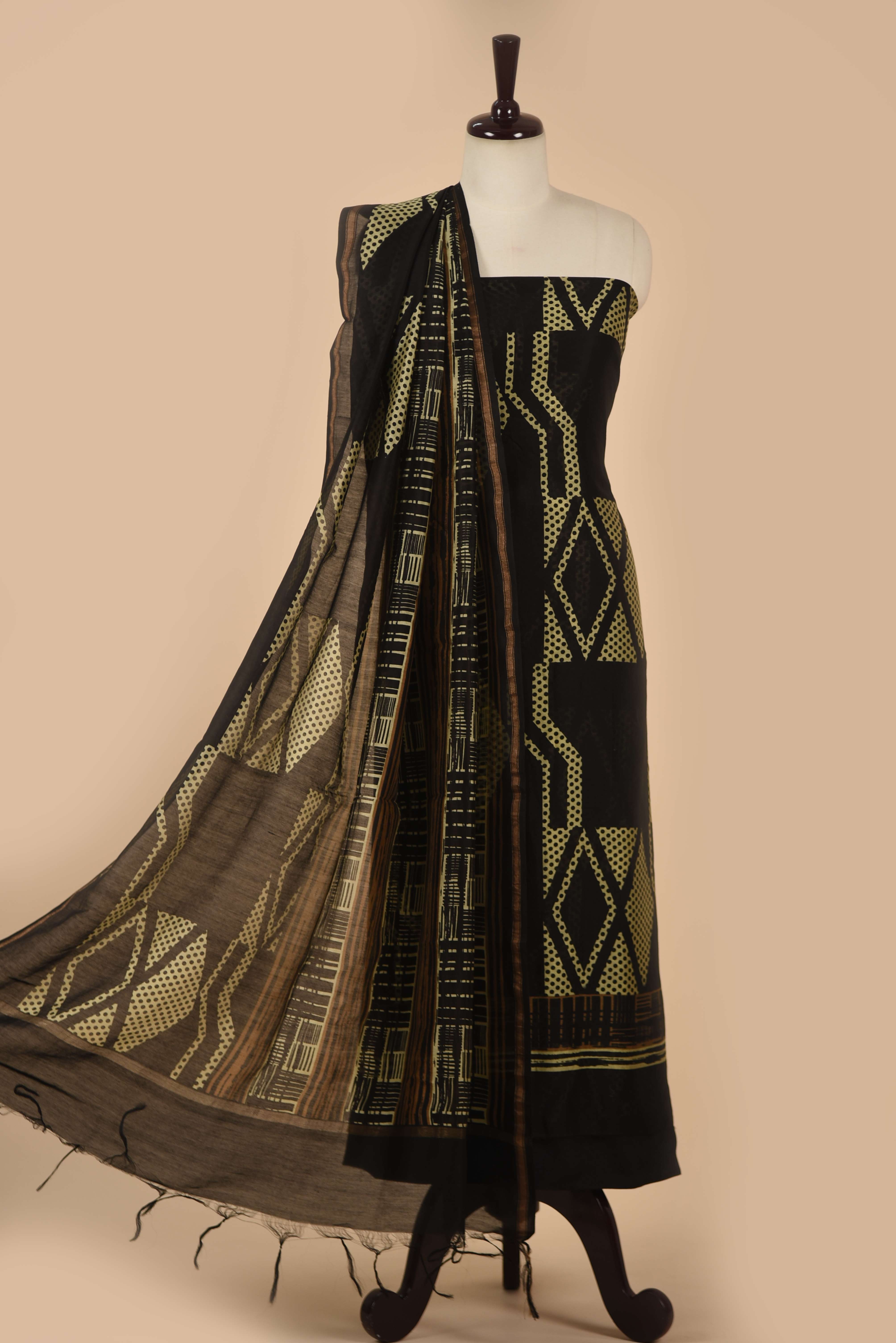 Black Chanderi Printed Unstitched Suit Fabric Set With Chanderi Printed Dupatta