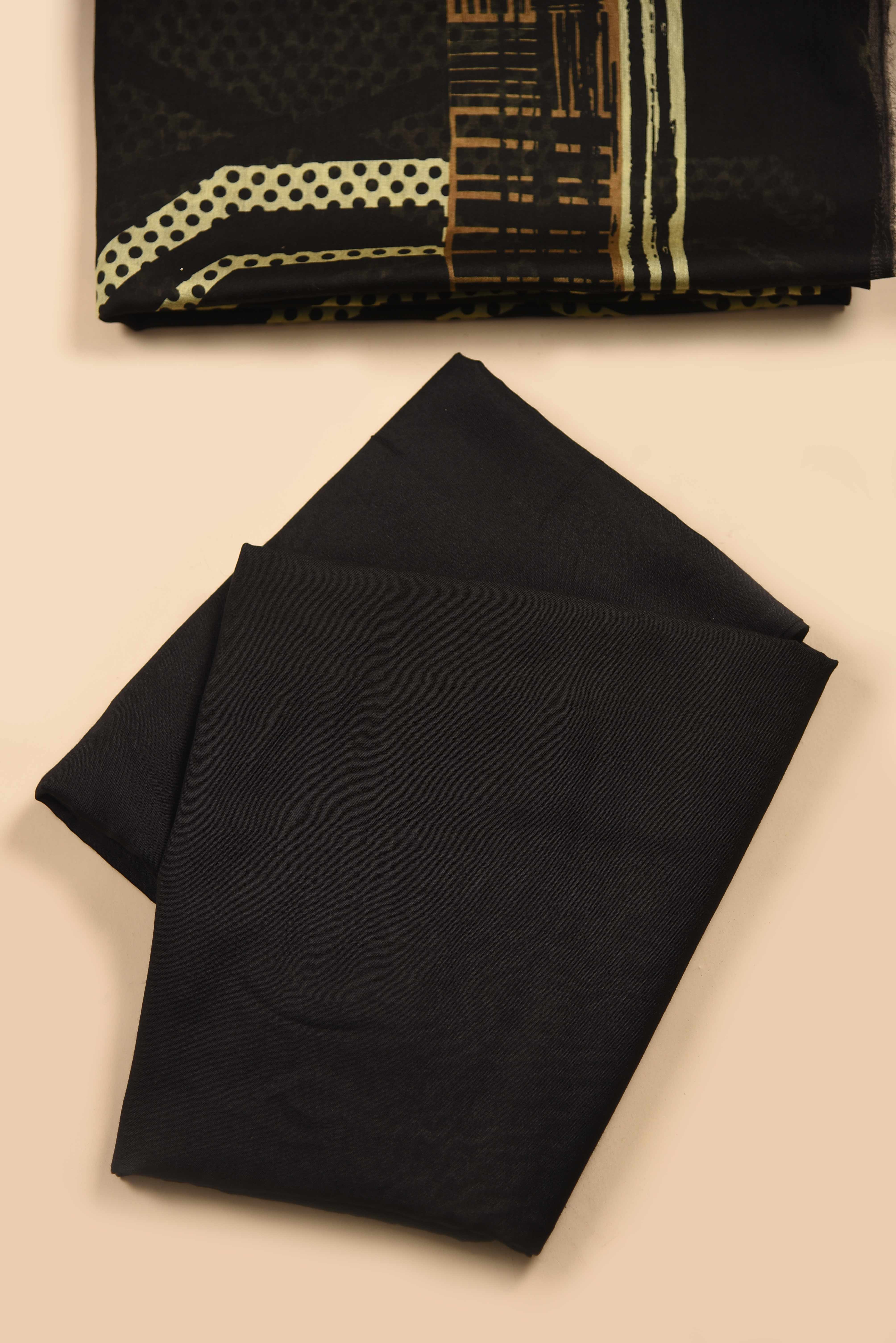 - Elevate your everyday wardrobe with our Black Chanderi Printed Unstitched Suit Fabric Set, a graceful blend of sophistication and comfort.