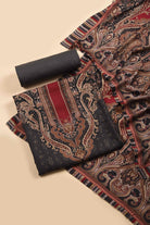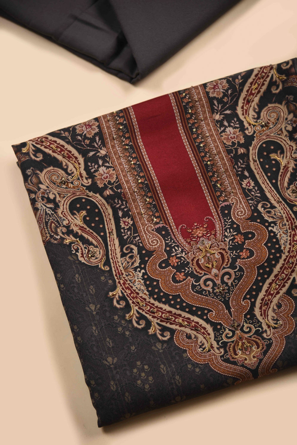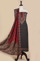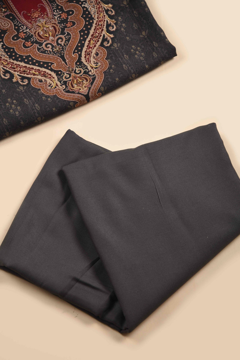 Black Winter wear Wool Spun Blend Printed With Embroidered Unstitched Suit Fabric Set With Wool Spun Blend Stole