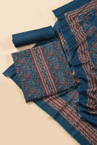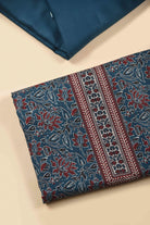 Blue Winter Wear Wool Spun Blend Printed Unstitched Suit Fabric Set With Wool Spun Blend Dupatta
