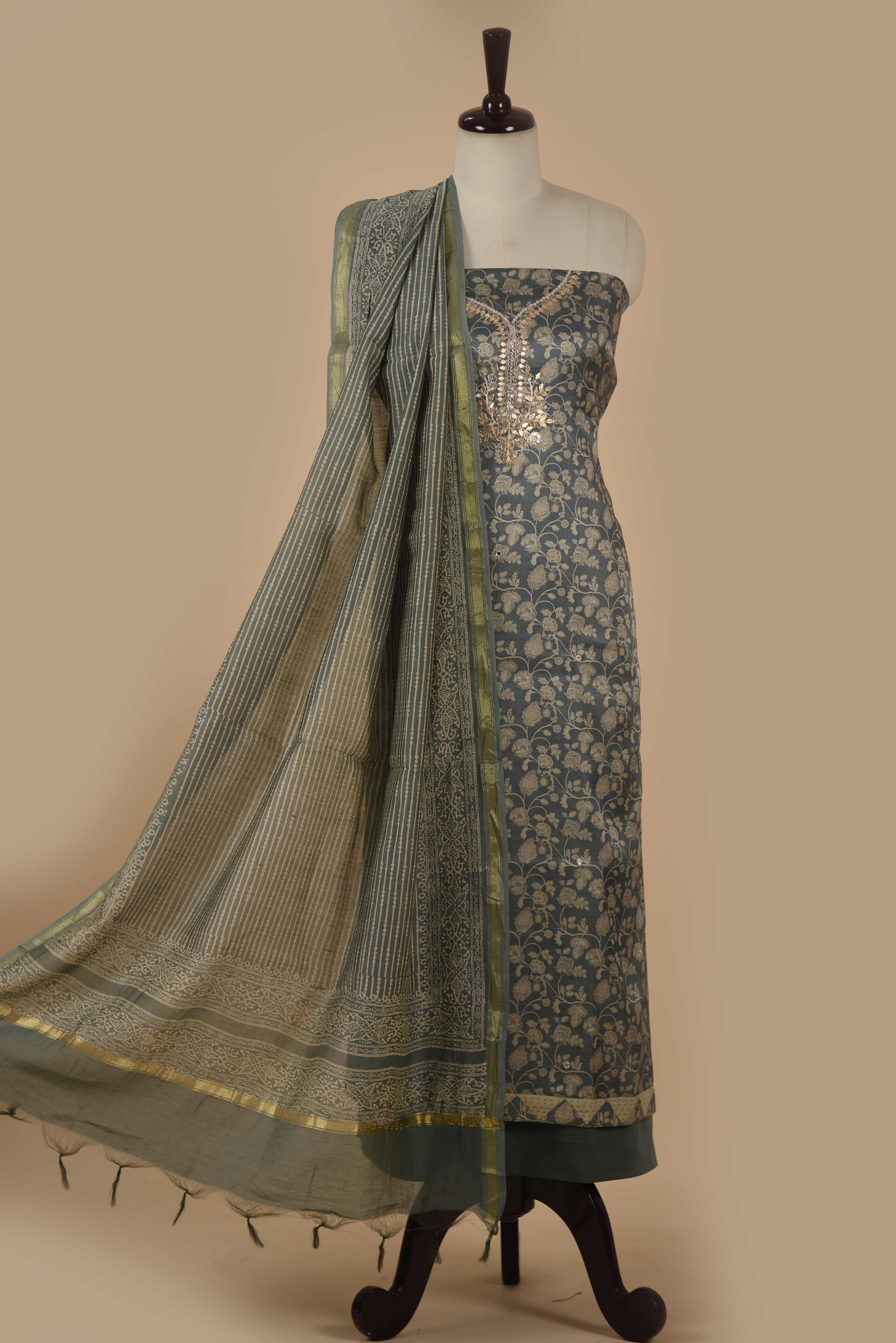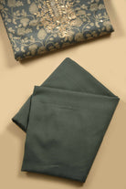 Green Chanderi Silk Blend Printed With Embroidery Unstitched Suit Fabric Set With Chanderi Dupatta