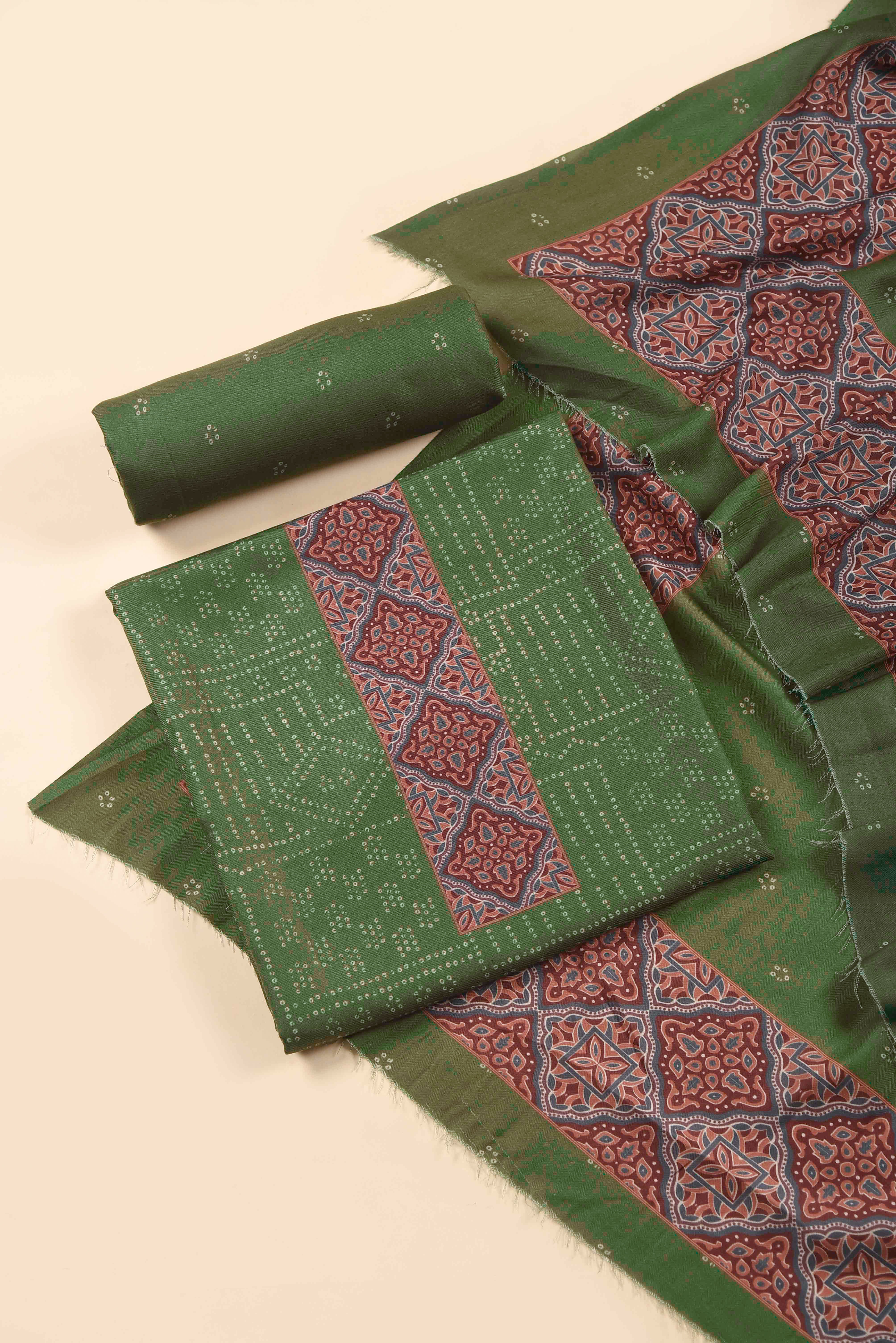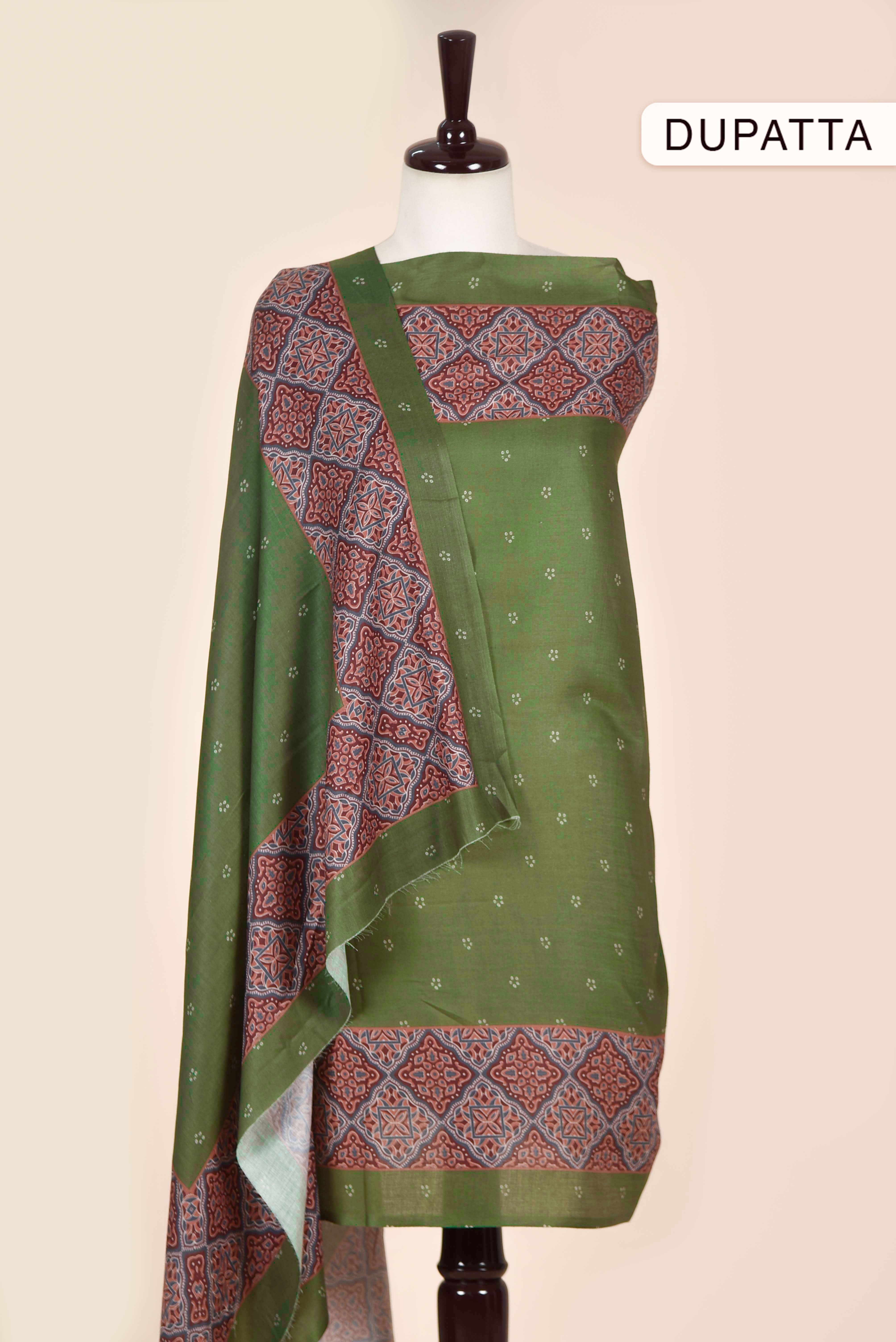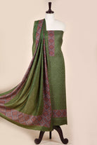 Mehndi Green Winter Wear Wool Spun Blend Printed Unstitched Fabric Set With Wool Blend Printed Dupatta
