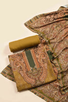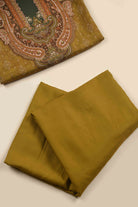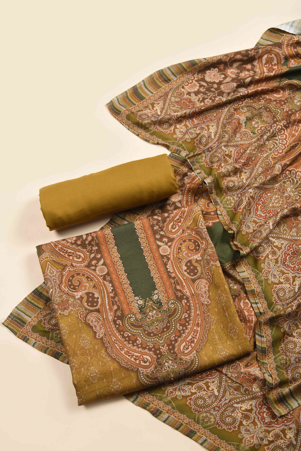 Mustard Winter wear Wool Spun Blend Printed With Embroidered Unstitched Suit Fabric Set With Wool Spun Blend Stole
