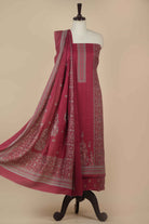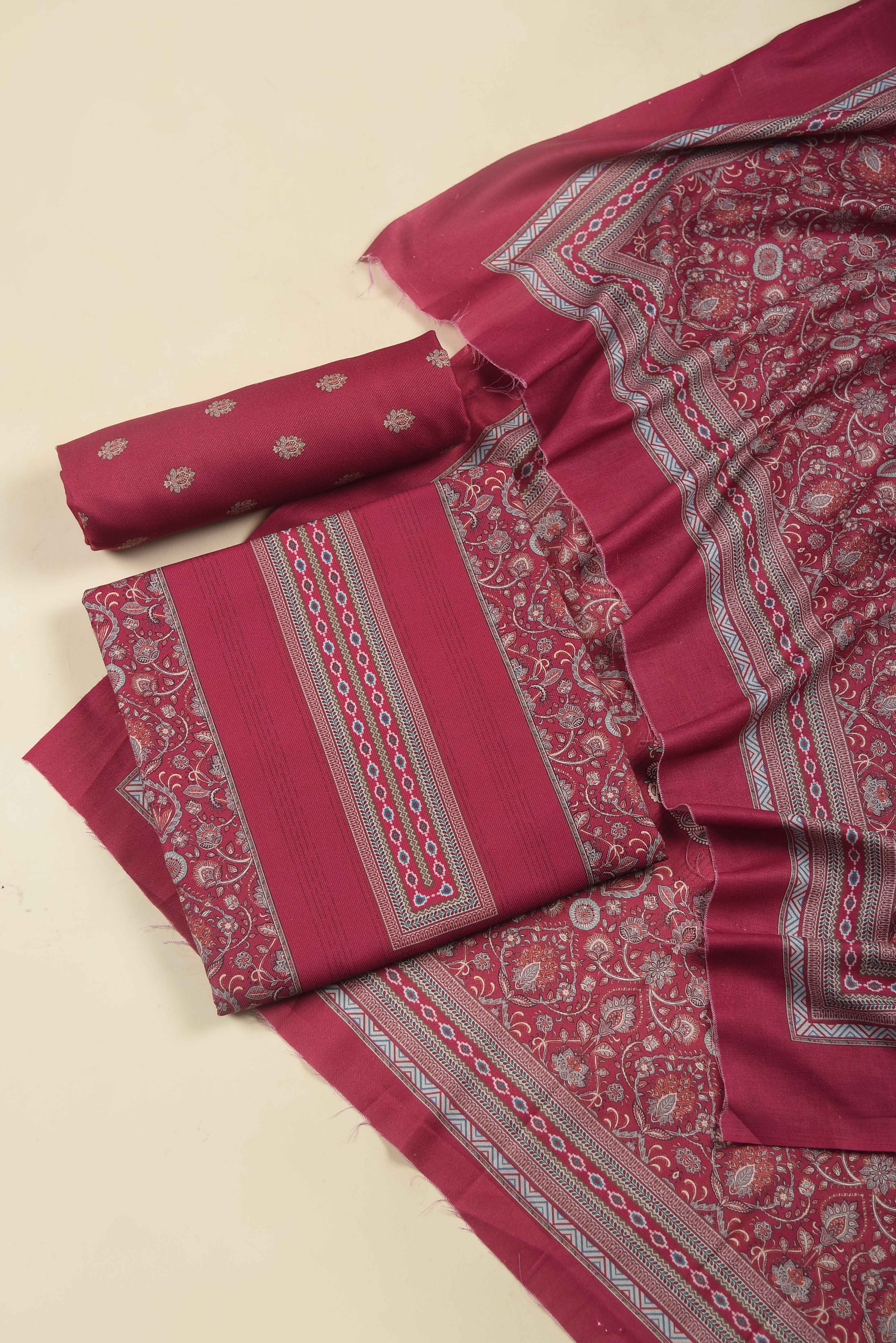Pink Winter Wear Printed Wool Spun Blend Unstitched Suit Fabric Set With Wool Spun Blend Printed Dupatta