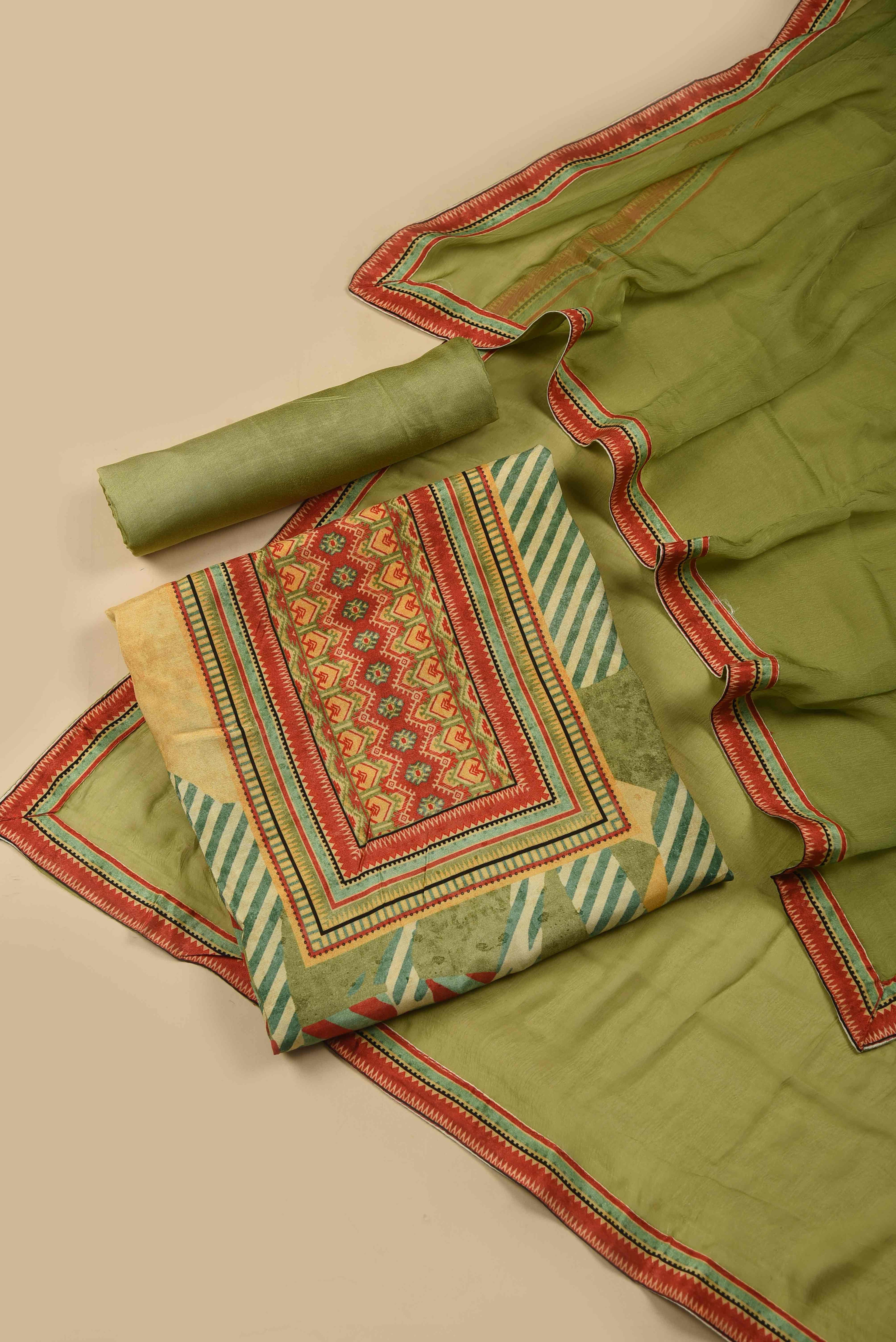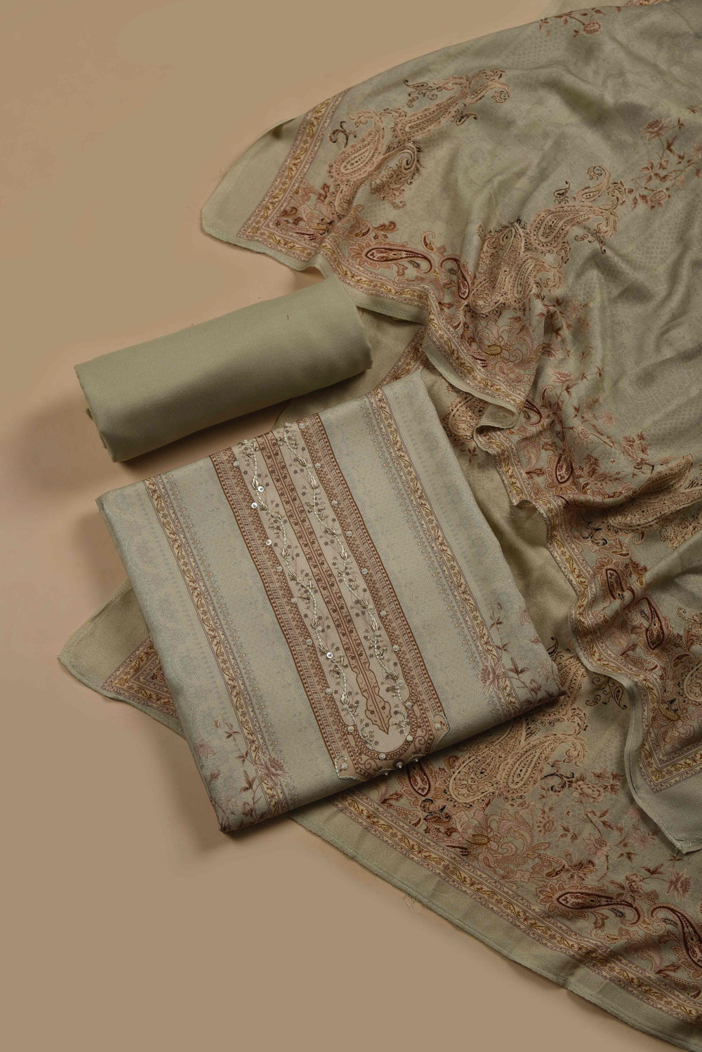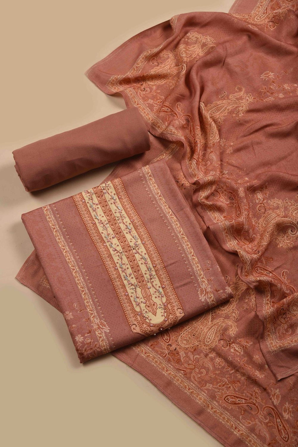 Unstitched suits represent a classic yet versatile option for gifting. Delve into our assortment of superior fabrics and dress materials, embellished with detailed embroideries and vivid patterns. Whether her style leans towards the traditional or contemporary, the unstitched suit fabric empowers her to craft a bespoke ensemble that aligns with her personal preferences.