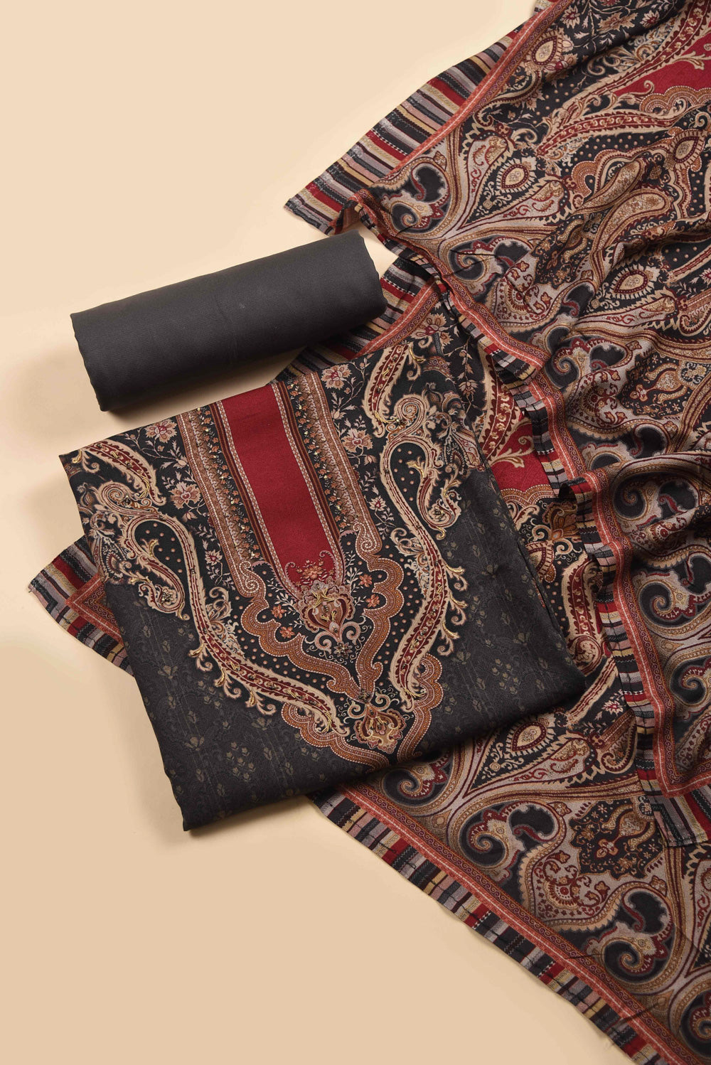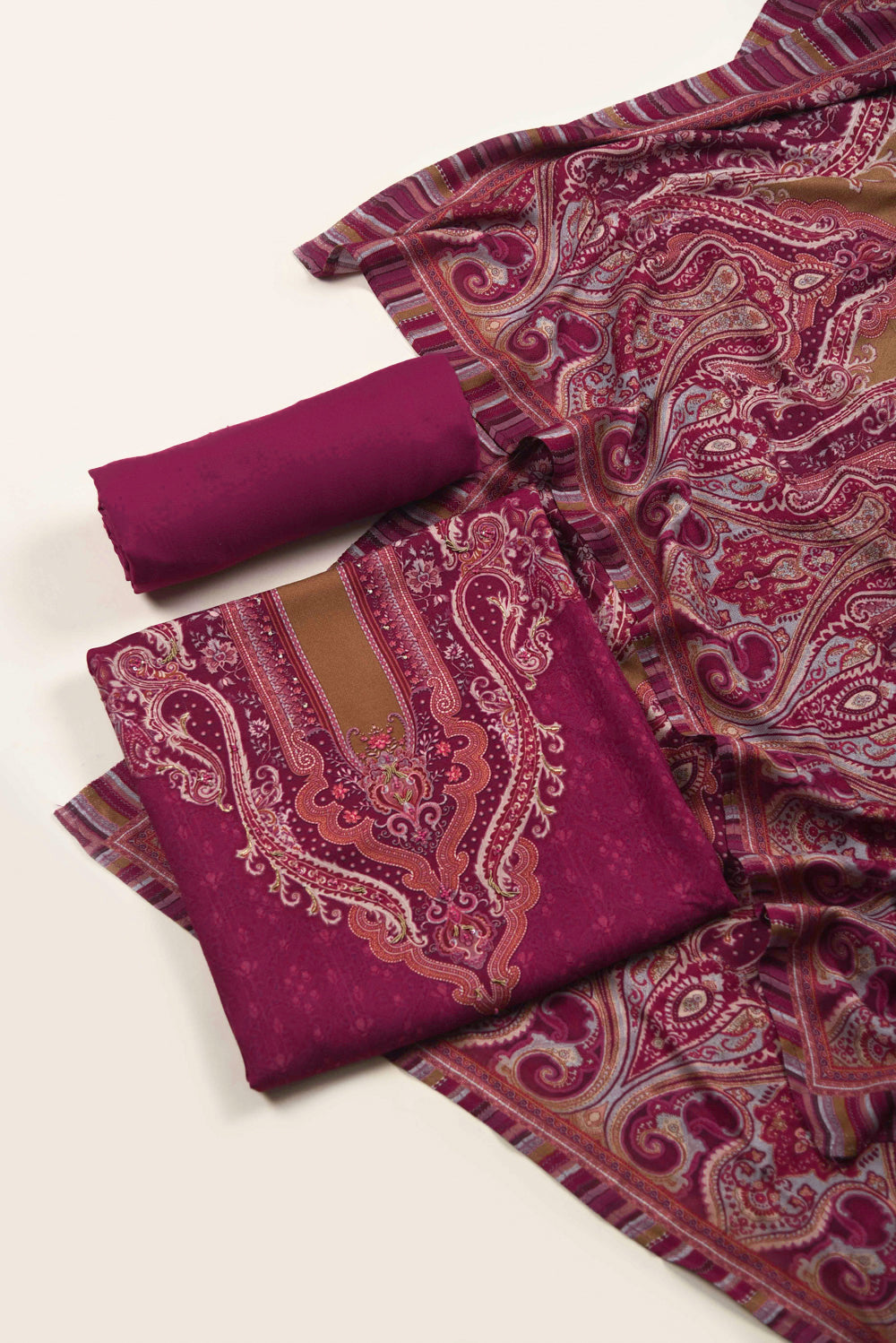 Unstitched suits represent a classic yet versatile option for gifting. Delve into our assortment of superior fabrics and dress materials, embellished with detailed embroideries and vivid patterns. Whether her style leans towards the traditional or contemporary, the unstitched suit fabric empowers her to craft a bespoke ensemble that aligns with her personal preferences.