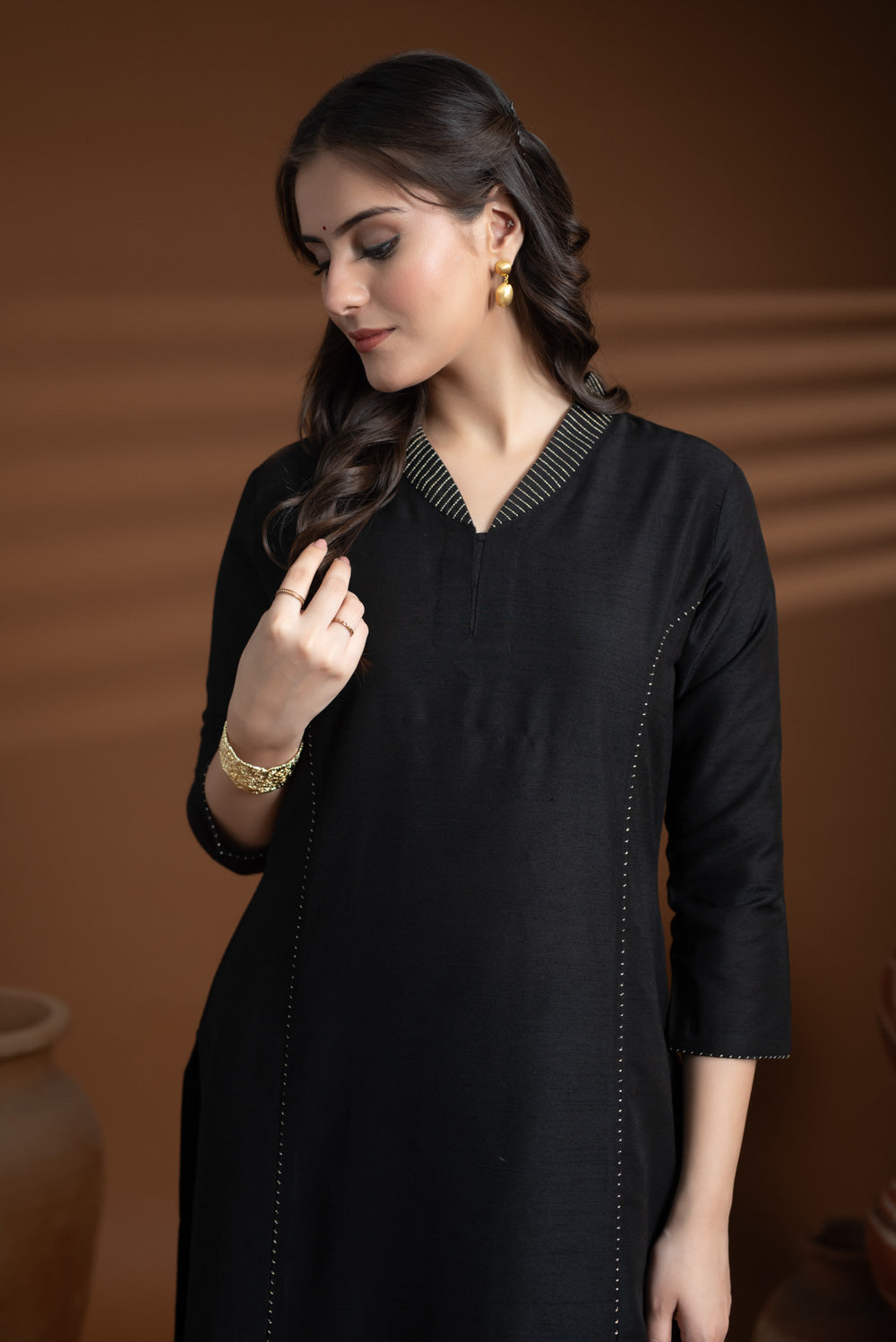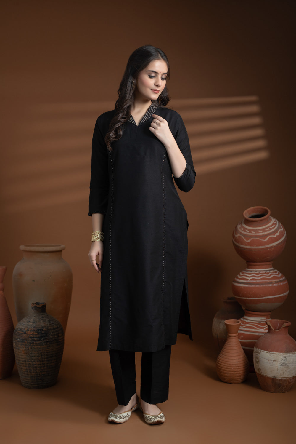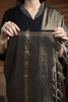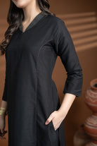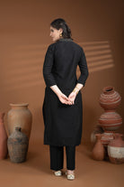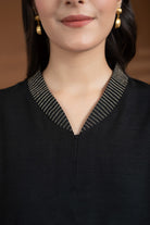 Black Cotton Silk Collared Zari Work Kurta Set – Regular Fit