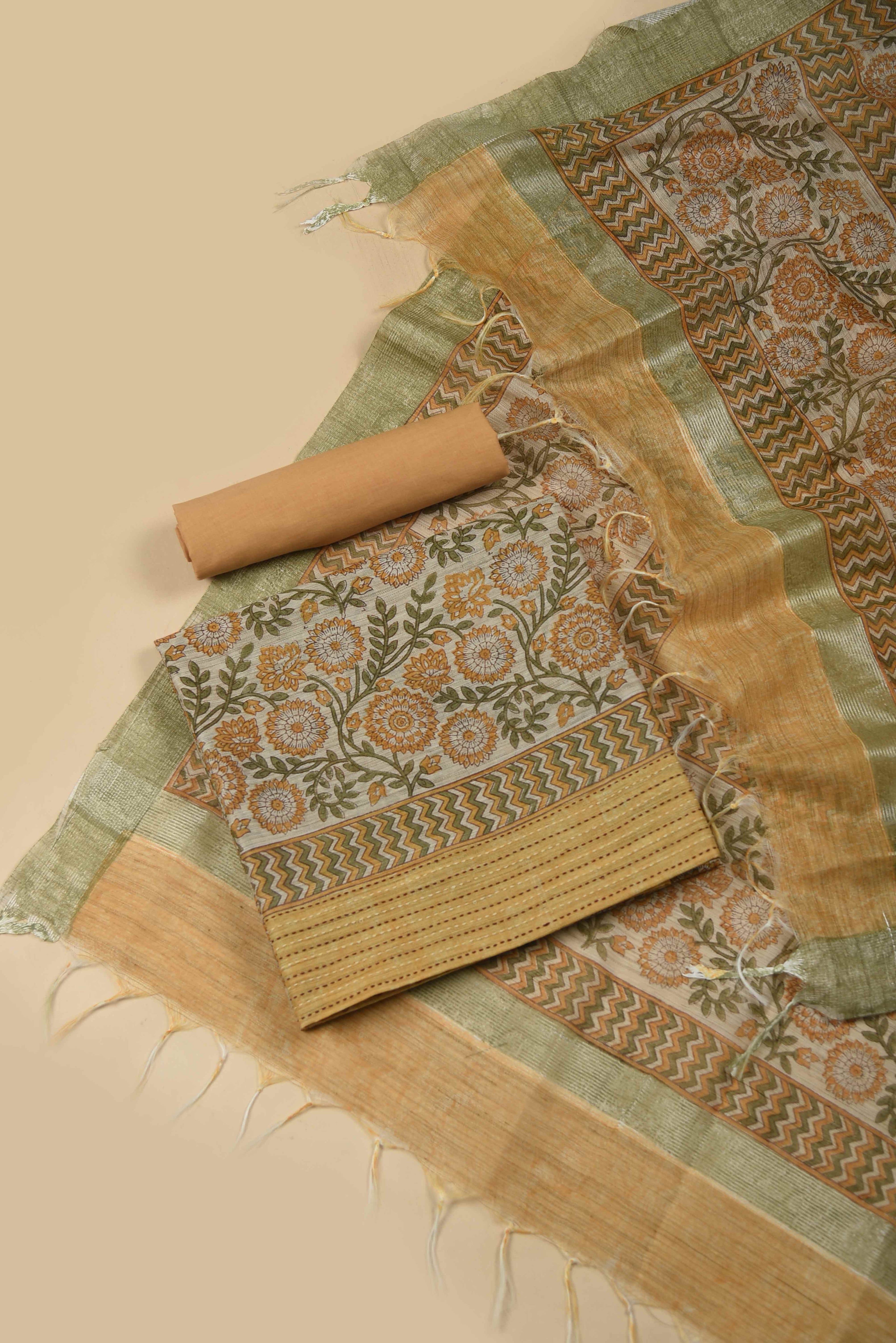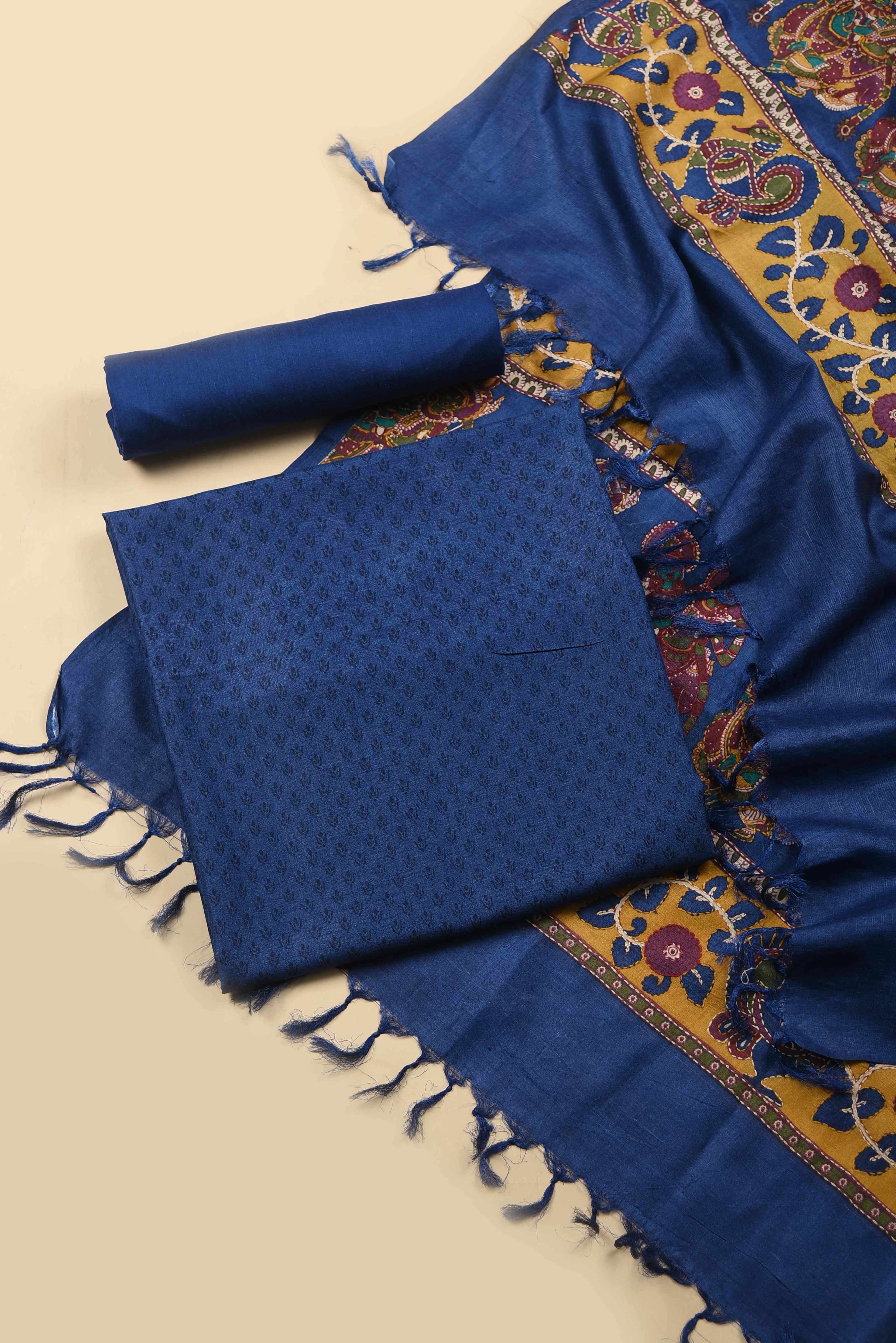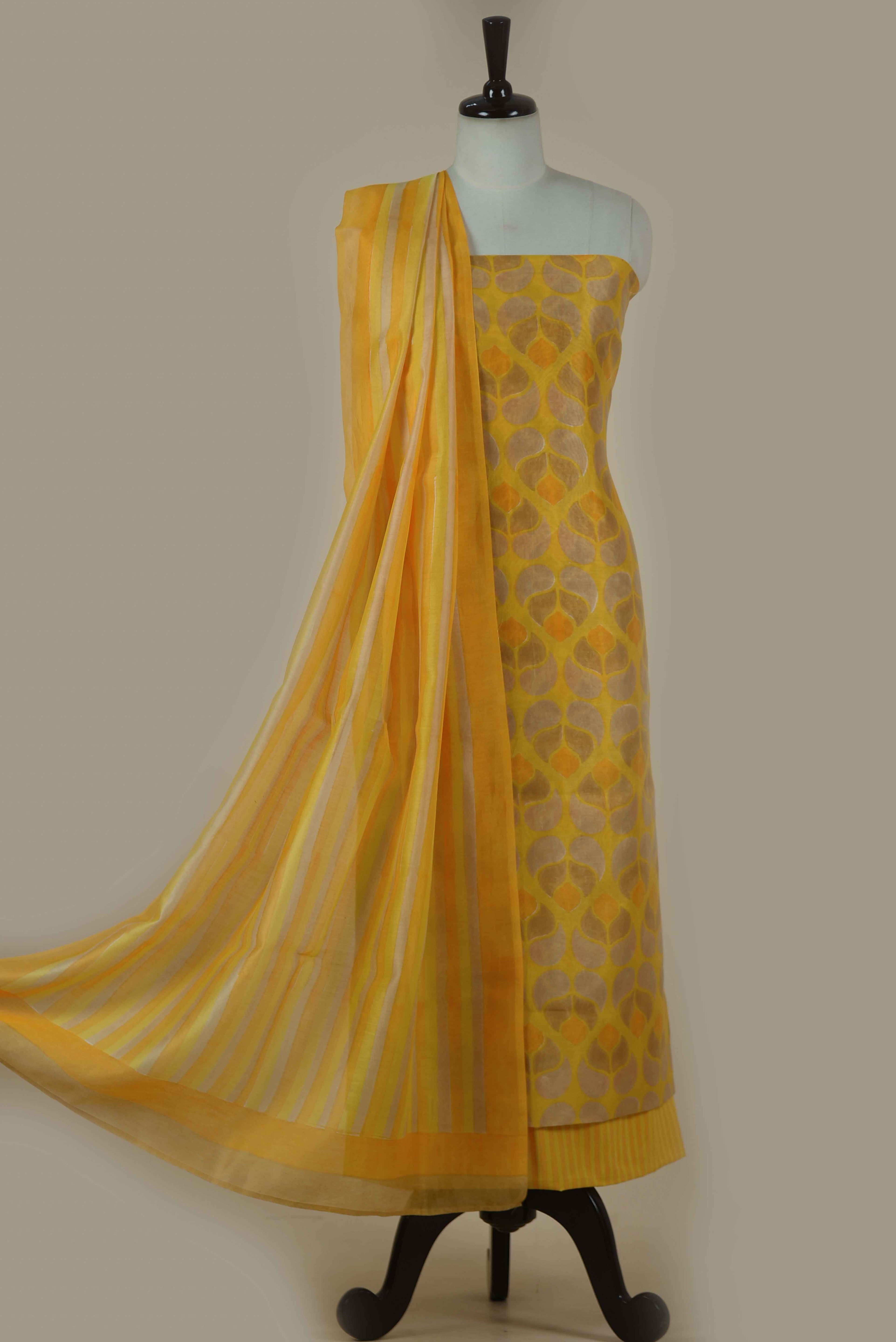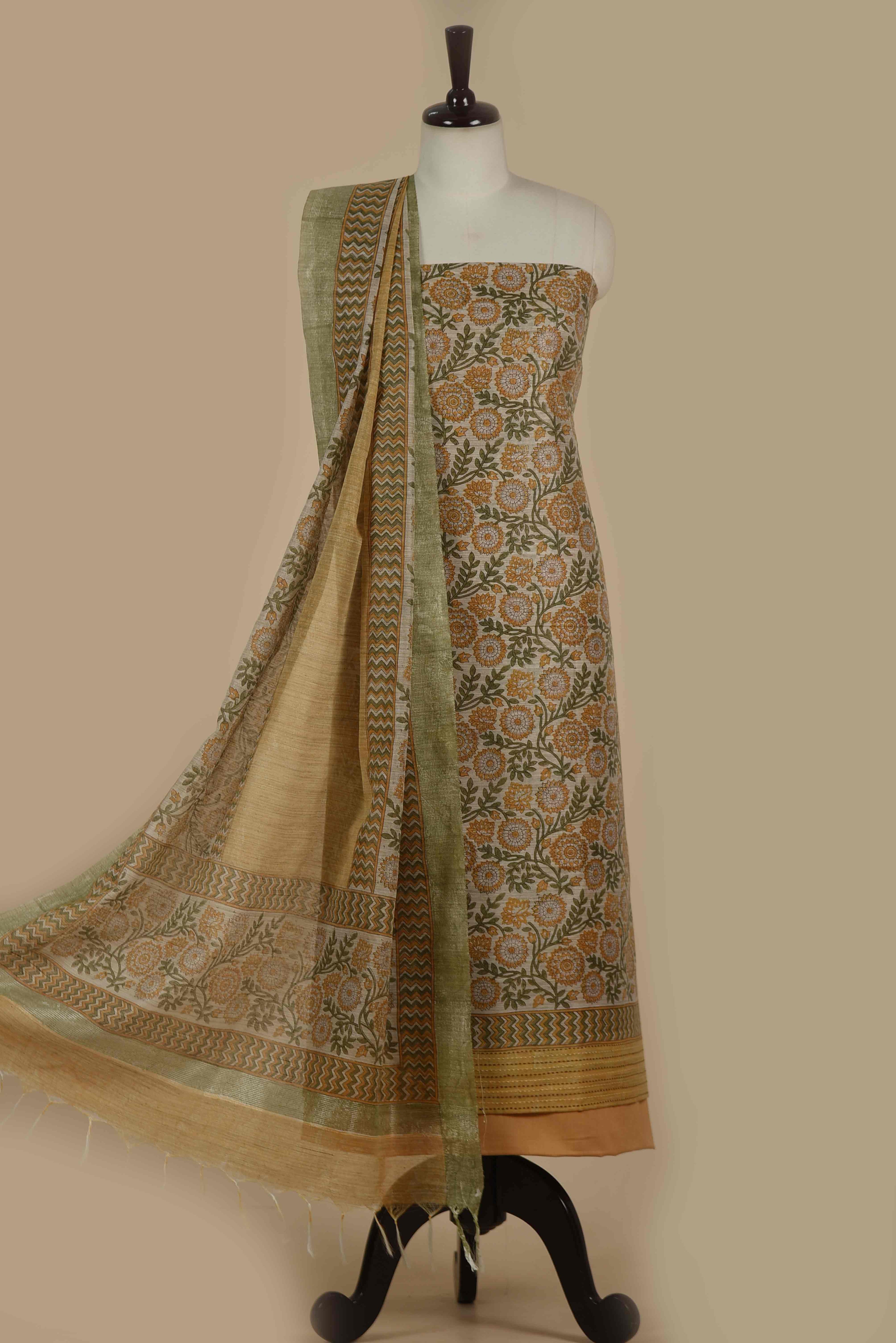 Characterized by its rich texture and natural sheen, tussar silk adds opulence to your ethnic wardrobe, creating a regal and glamorous look. Indulge in luxury with our luxurious tussar silk dress material for women.