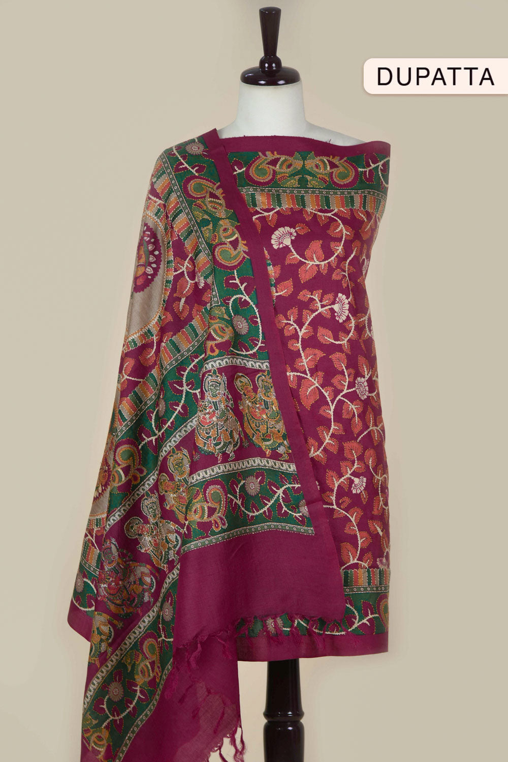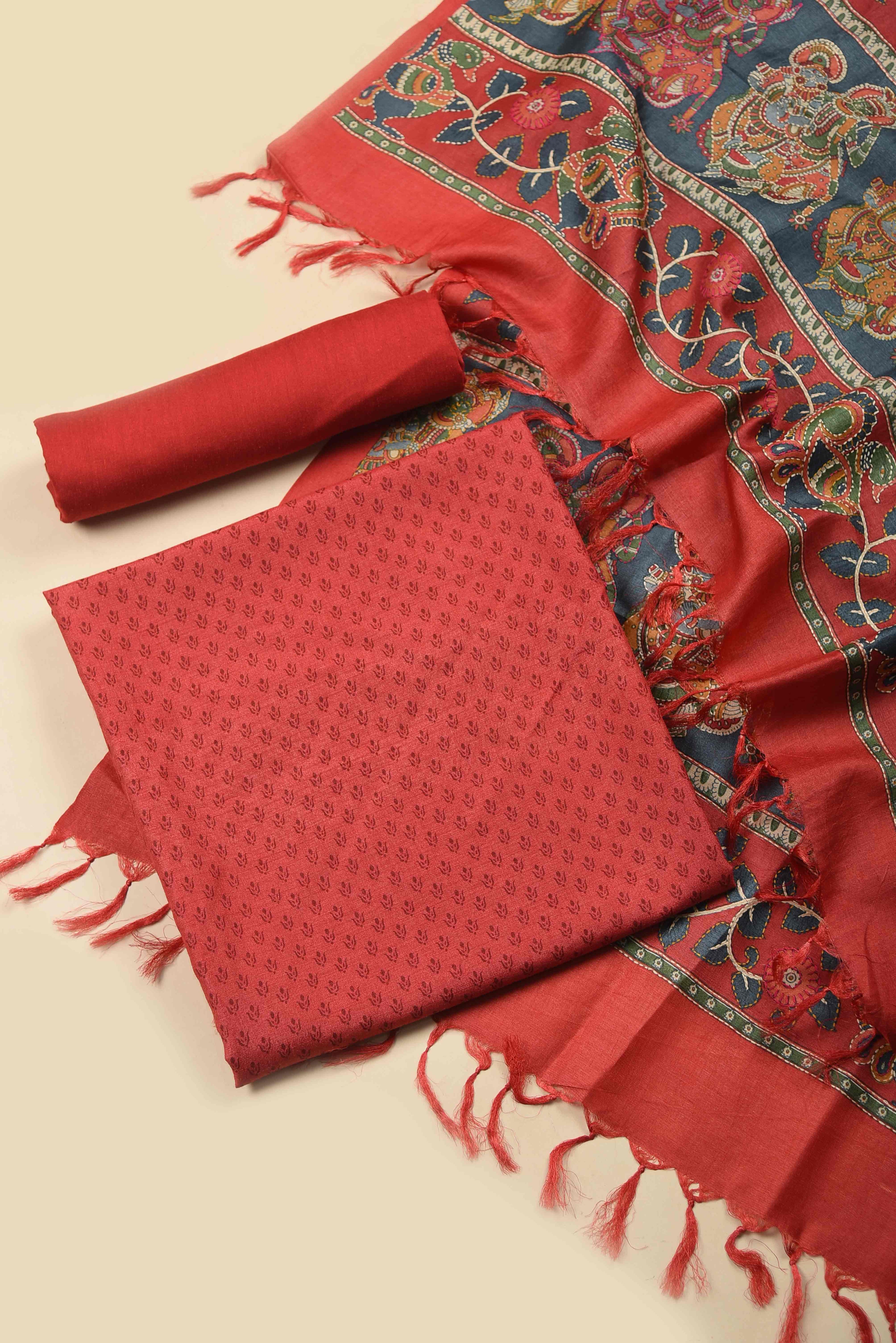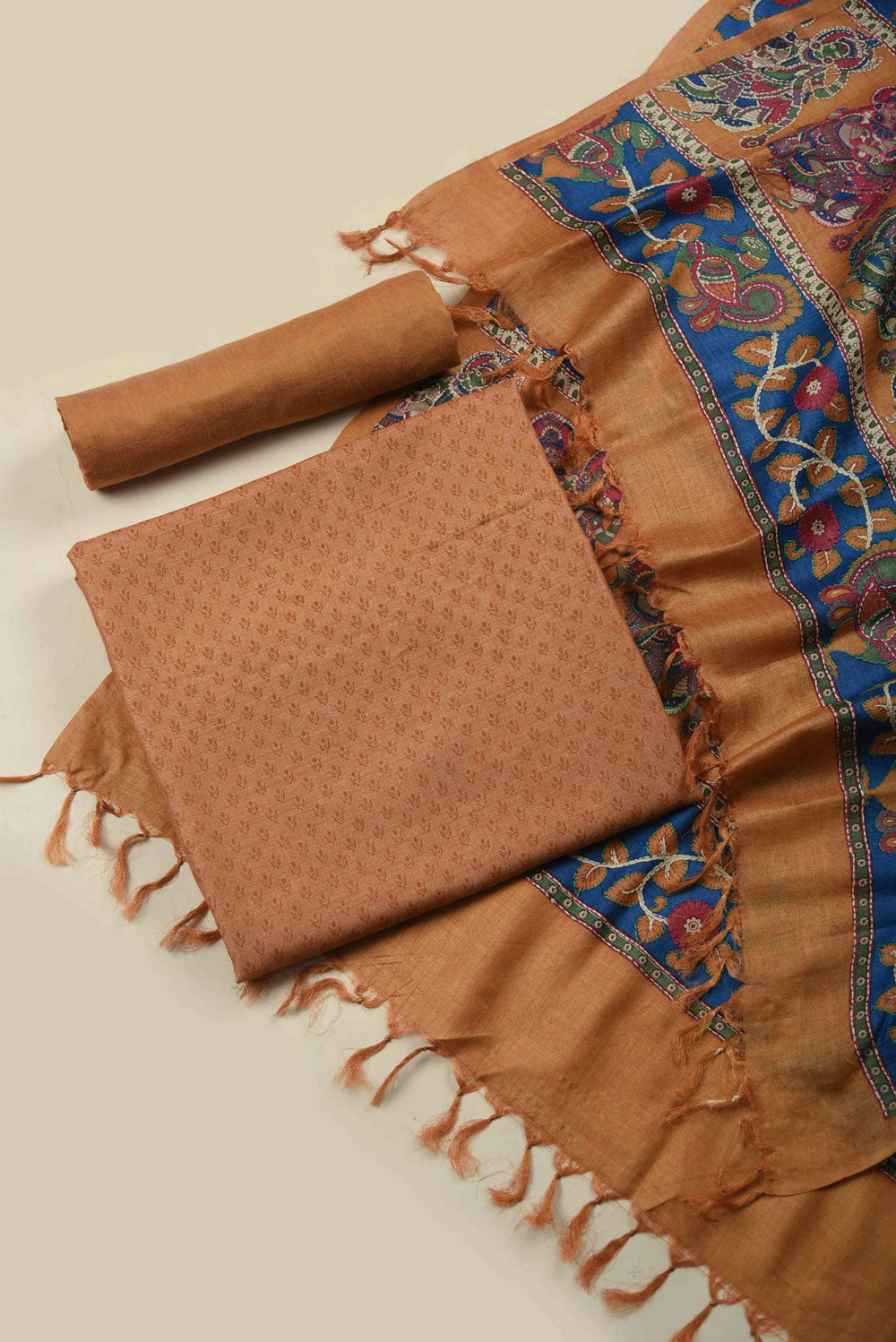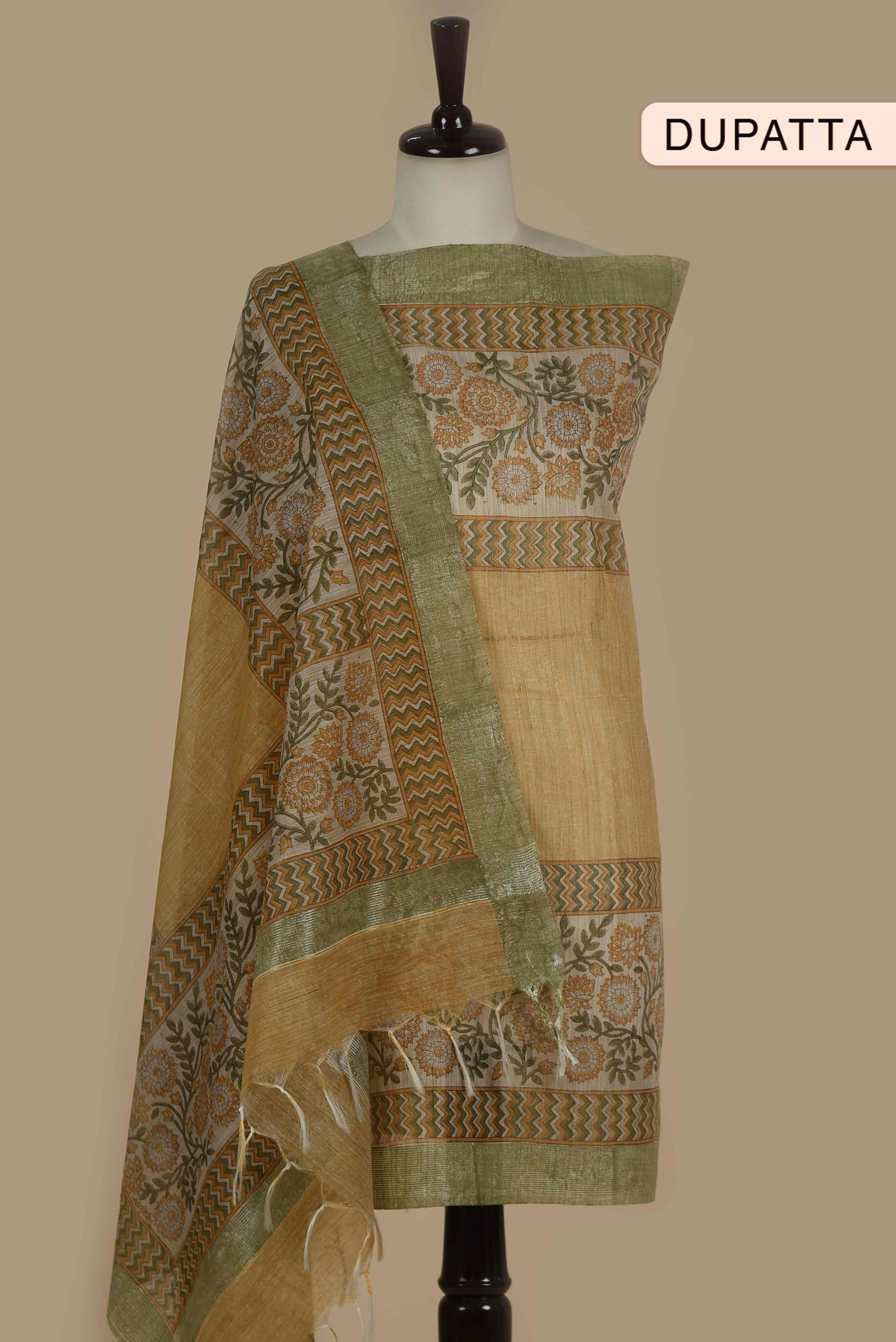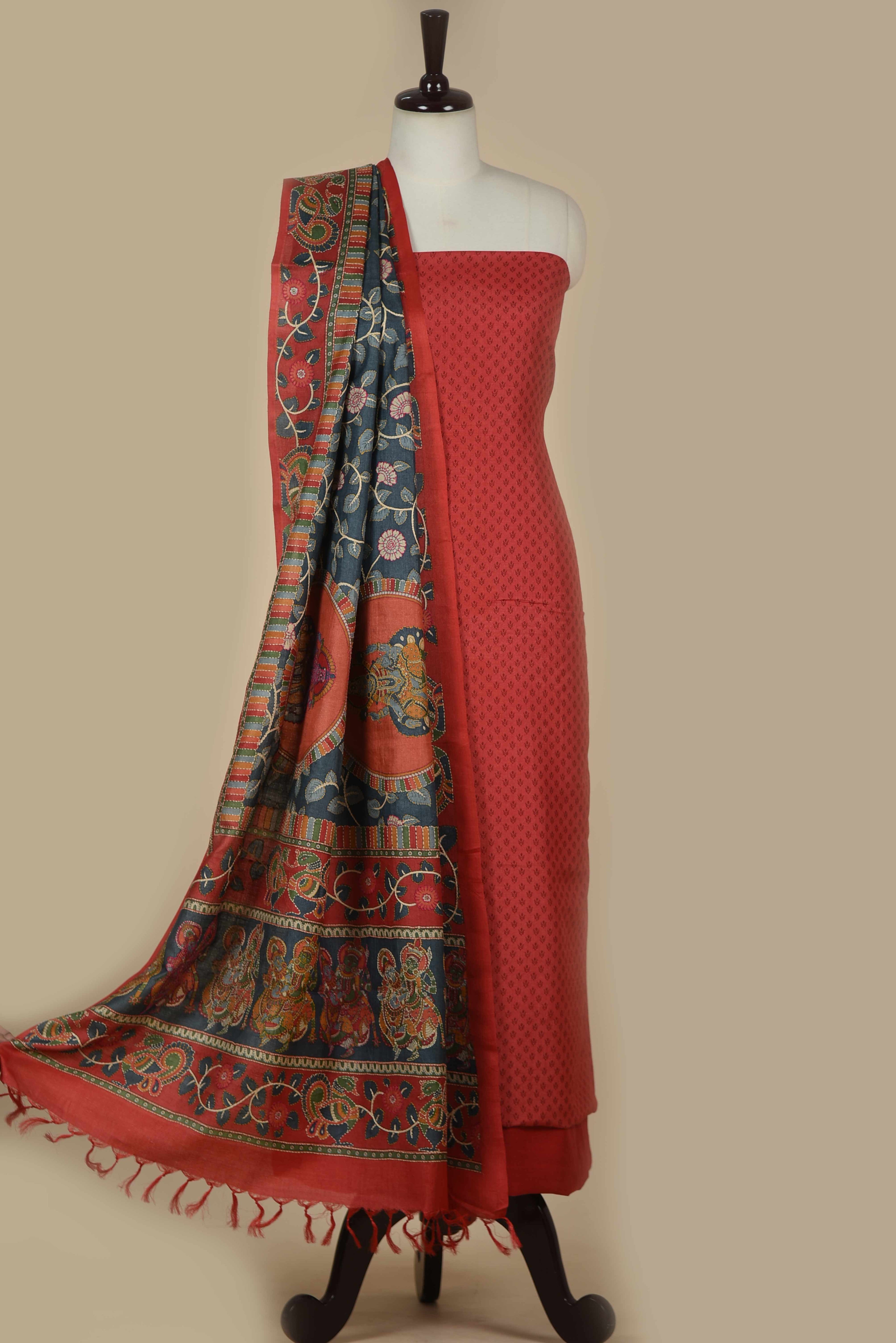 Characterized by its rich texture and natural sheen, tussar silk adds opulence to your ethnic wardrobe, creating a regal and glamorous look. Indulge in luxury with our luxurious tussar silk dress material for women.