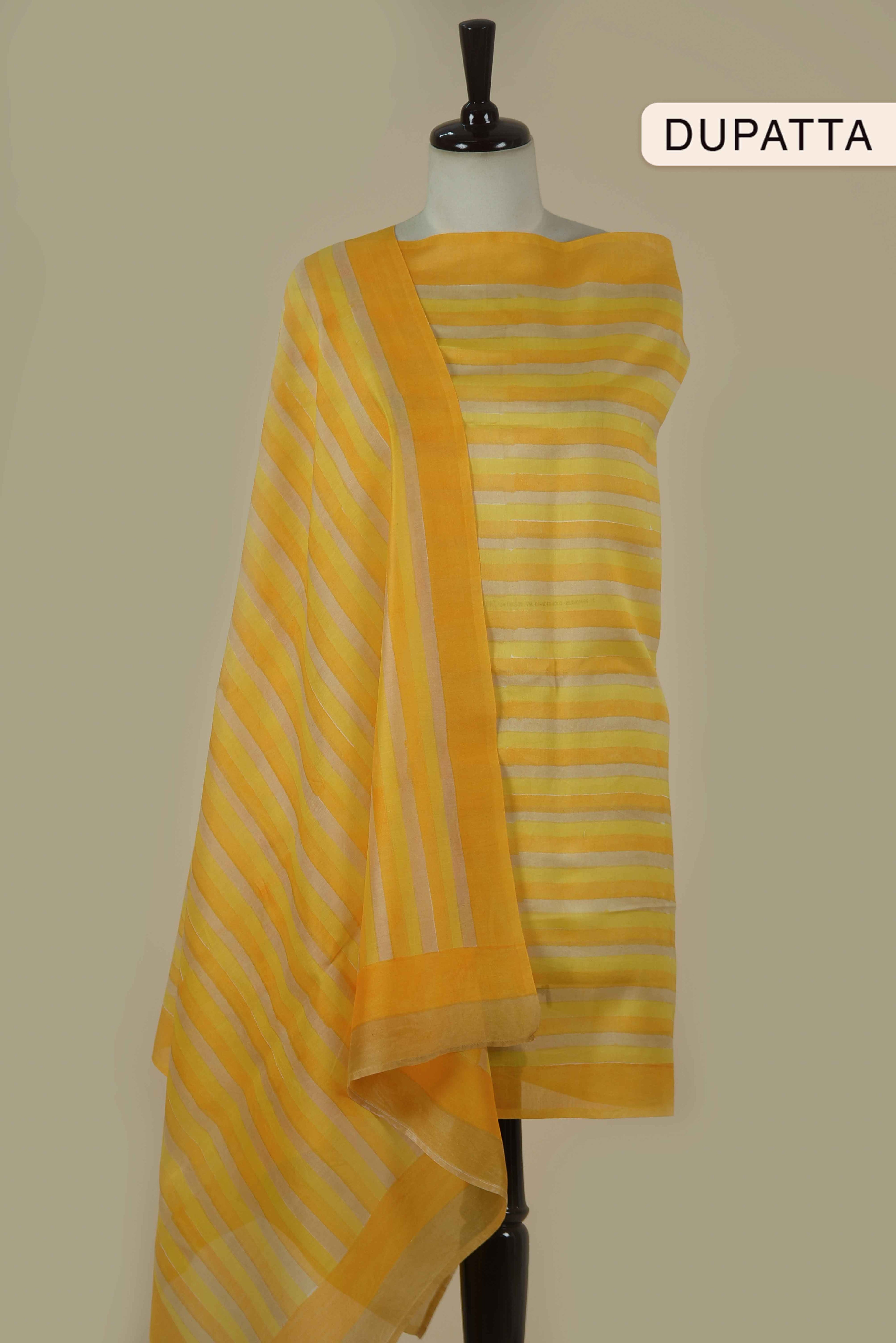 Kota Doria's unique charm lies in its blend of cotton and silk, creating an unstitched suit fabric that's both luxurious and breathable. Traditionally handwoven with a mesmerizing grid pattern, this lightweight dress material is ideal for crafting elegant and comfortable summer outfits.