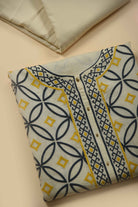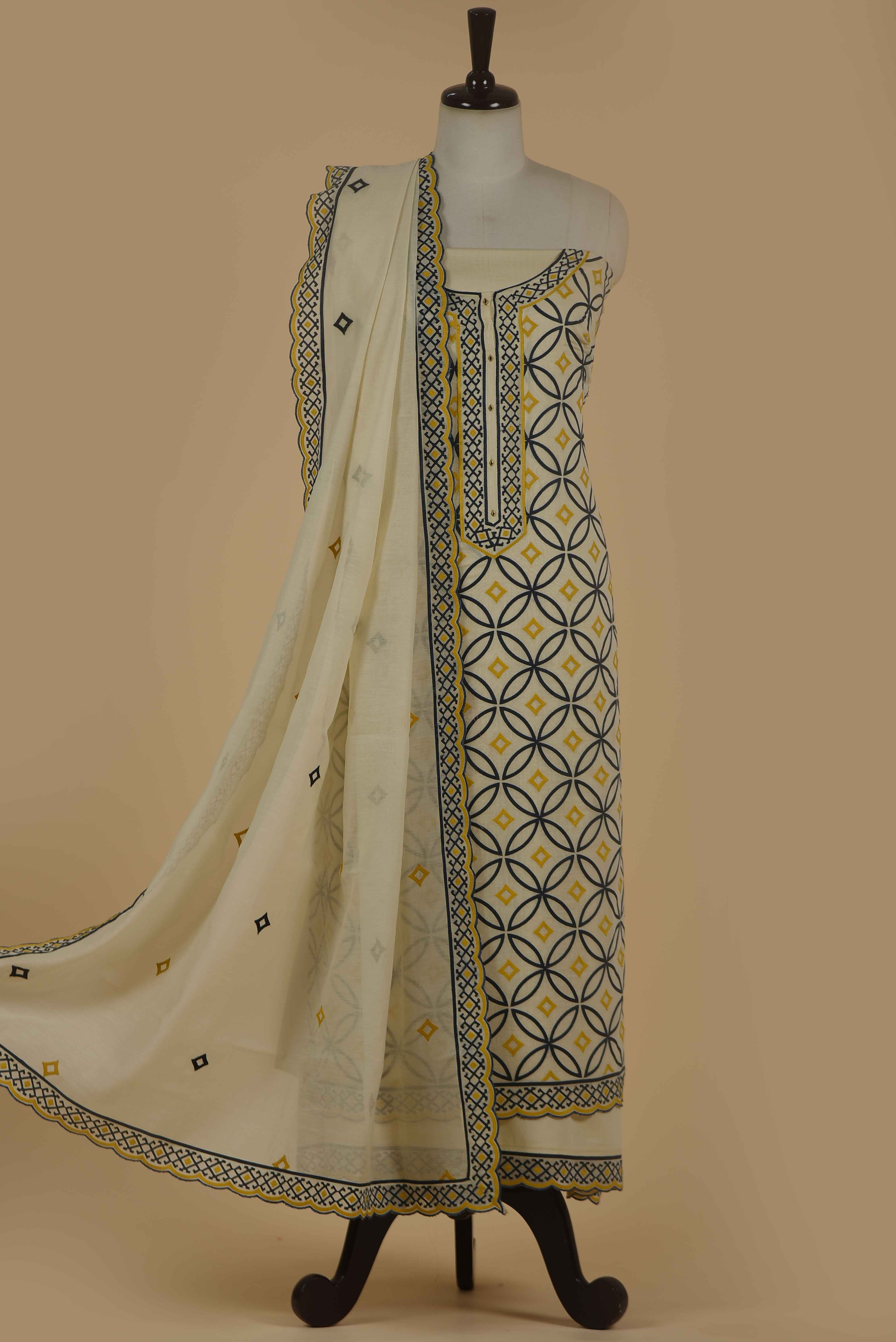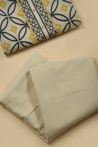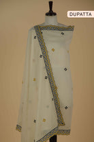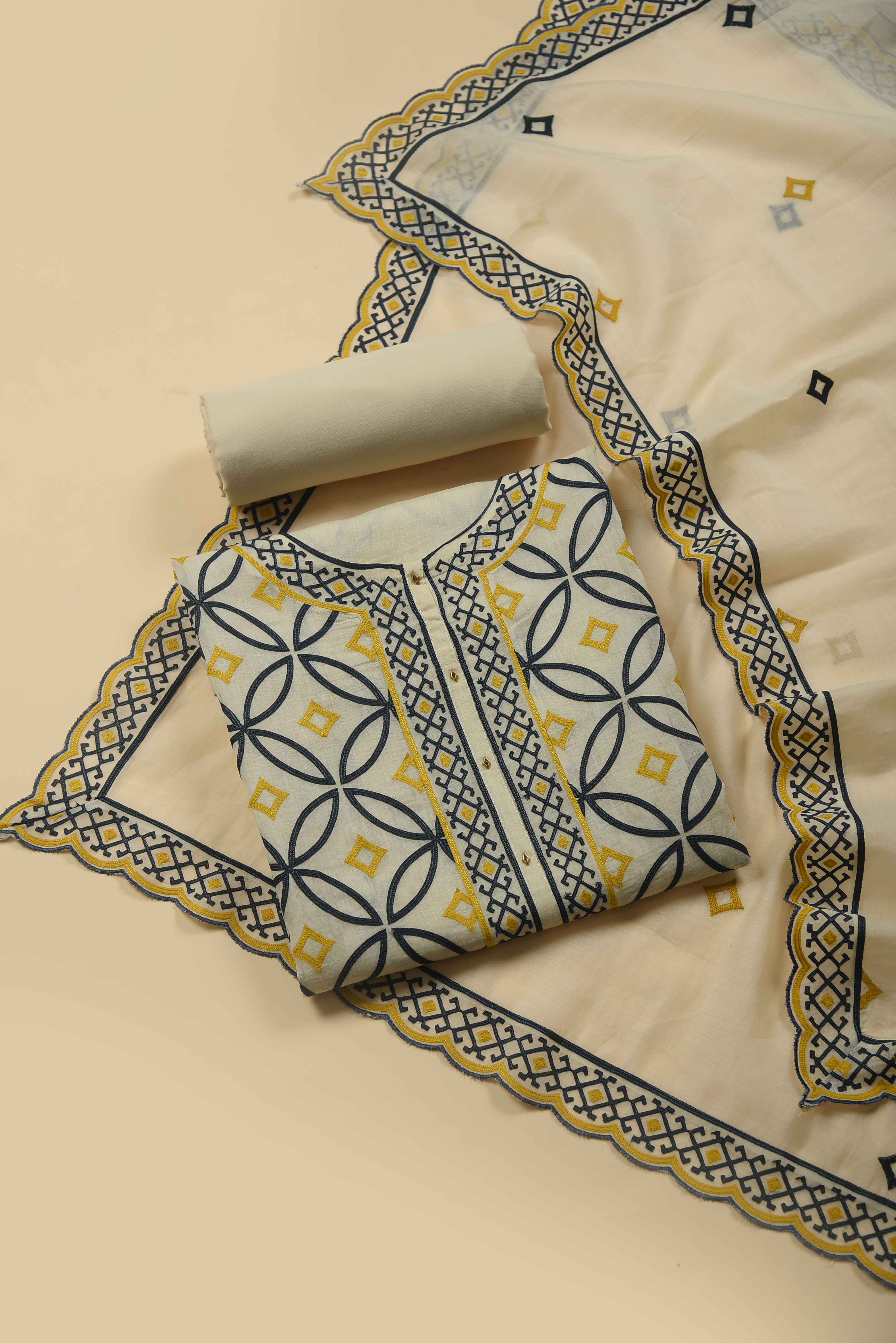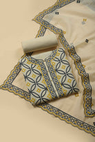 Beige With Yellow Mul Chanderi Embroidered Unstitched Suit Fabric Set With Mul Chanderi Embroidered Dupatta