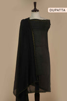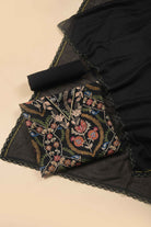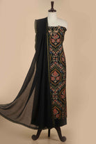 Black Rayon Silk Blend Printed Unstitched Suit Fabric Set With Embroidered Muslin Dupatta