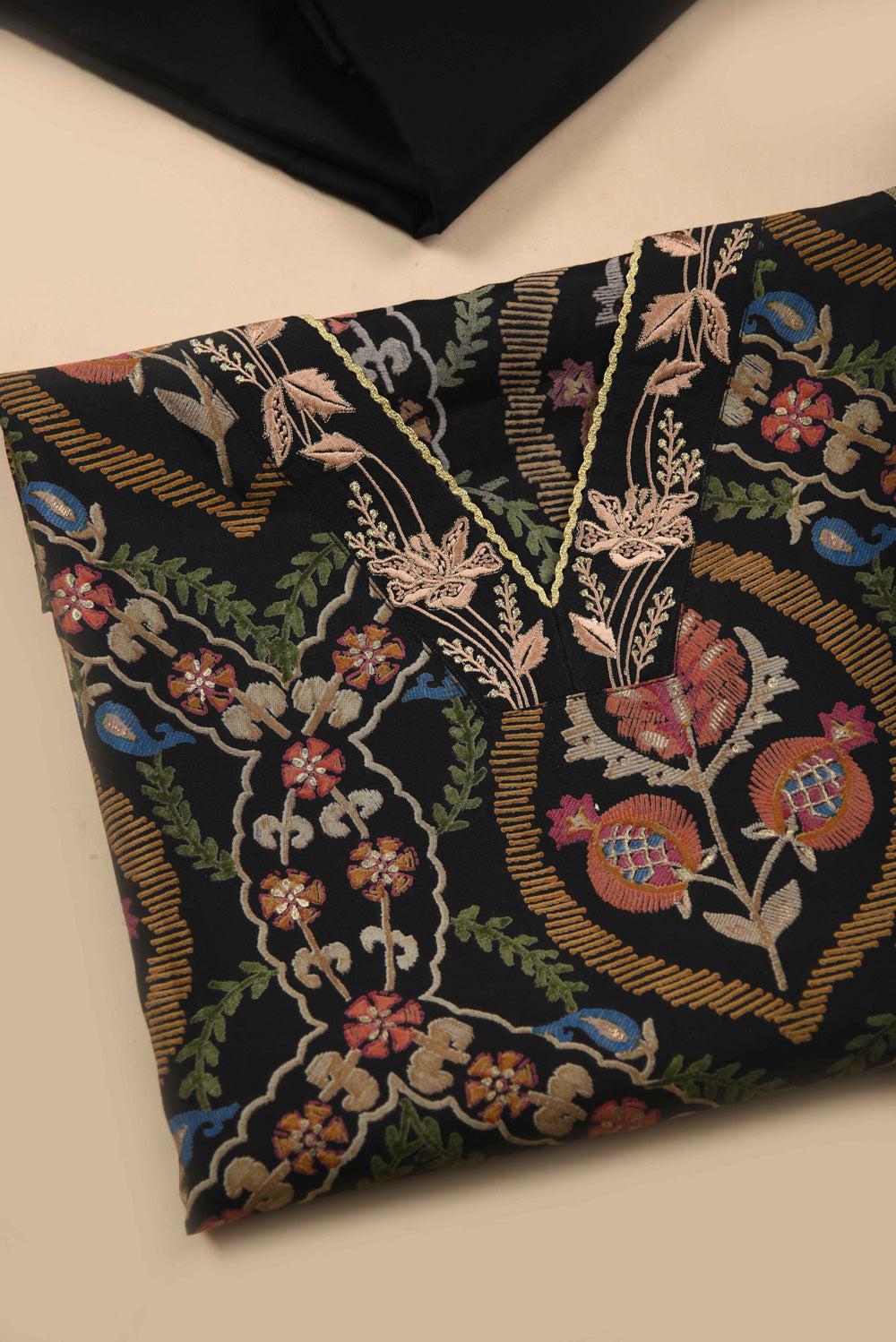 - Discover timeless elegance with this premium unstitched suit fabric set, featuring a sophisticated Black rayon-silk blend.