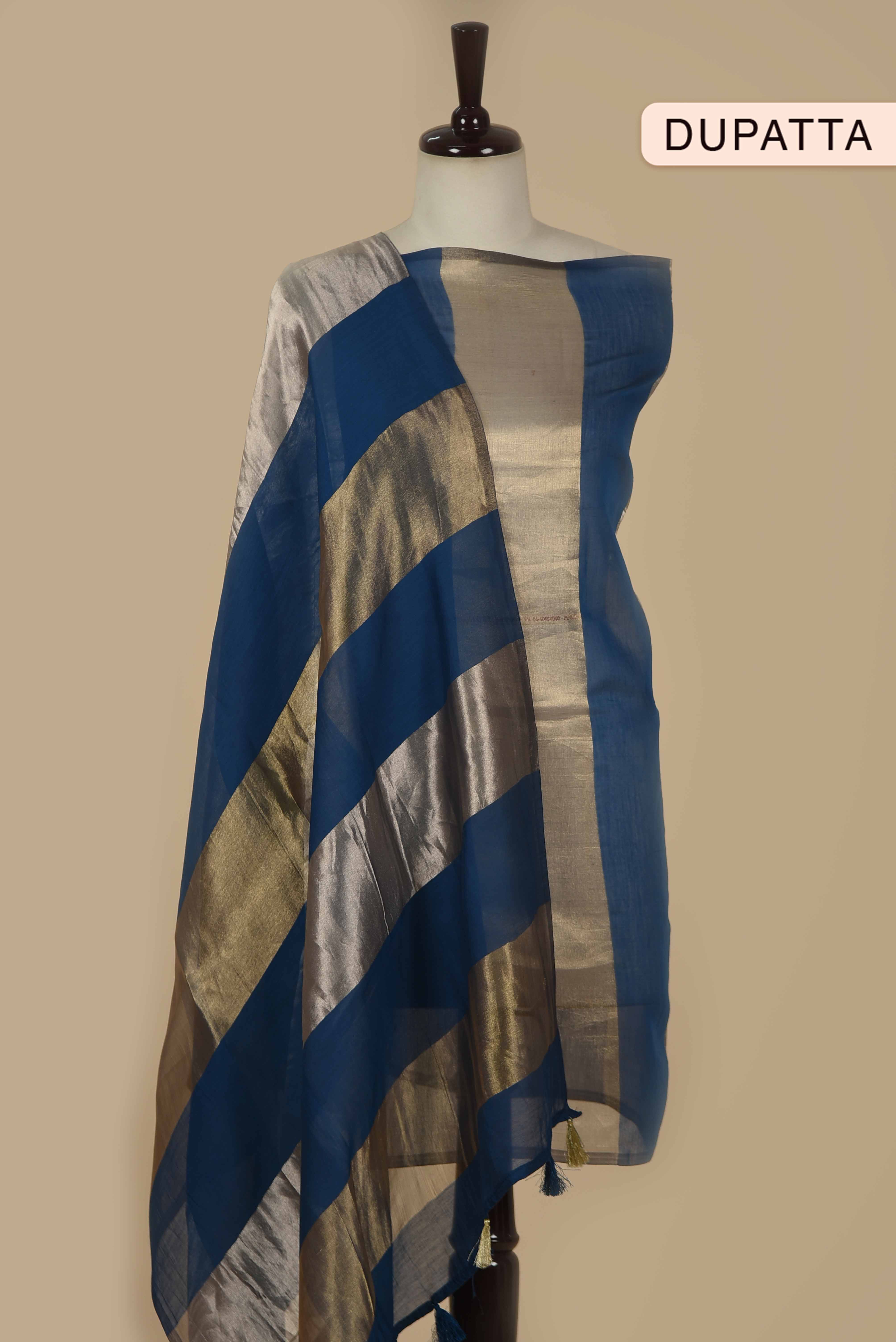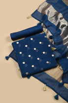 Blue Chanderi Silk Blend Woven Unstitched Suit Fabric Set With Chanderi Silk Blend Woven Dupatta