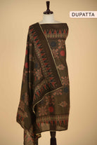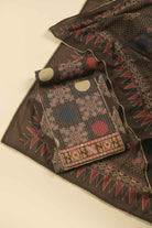Brown Pure Cotton Hand Block Printed With Embroidered Unstitched Suit Fabric Set With Pure Cotton Printed Dupatta