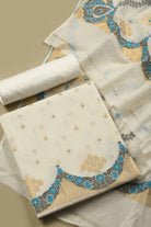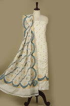 Cream With Turquoise Chanderi Silk Jamdani Woven Unstitched Suit Fabric Set With Chanderi Silk Woven Dupatta - III
