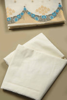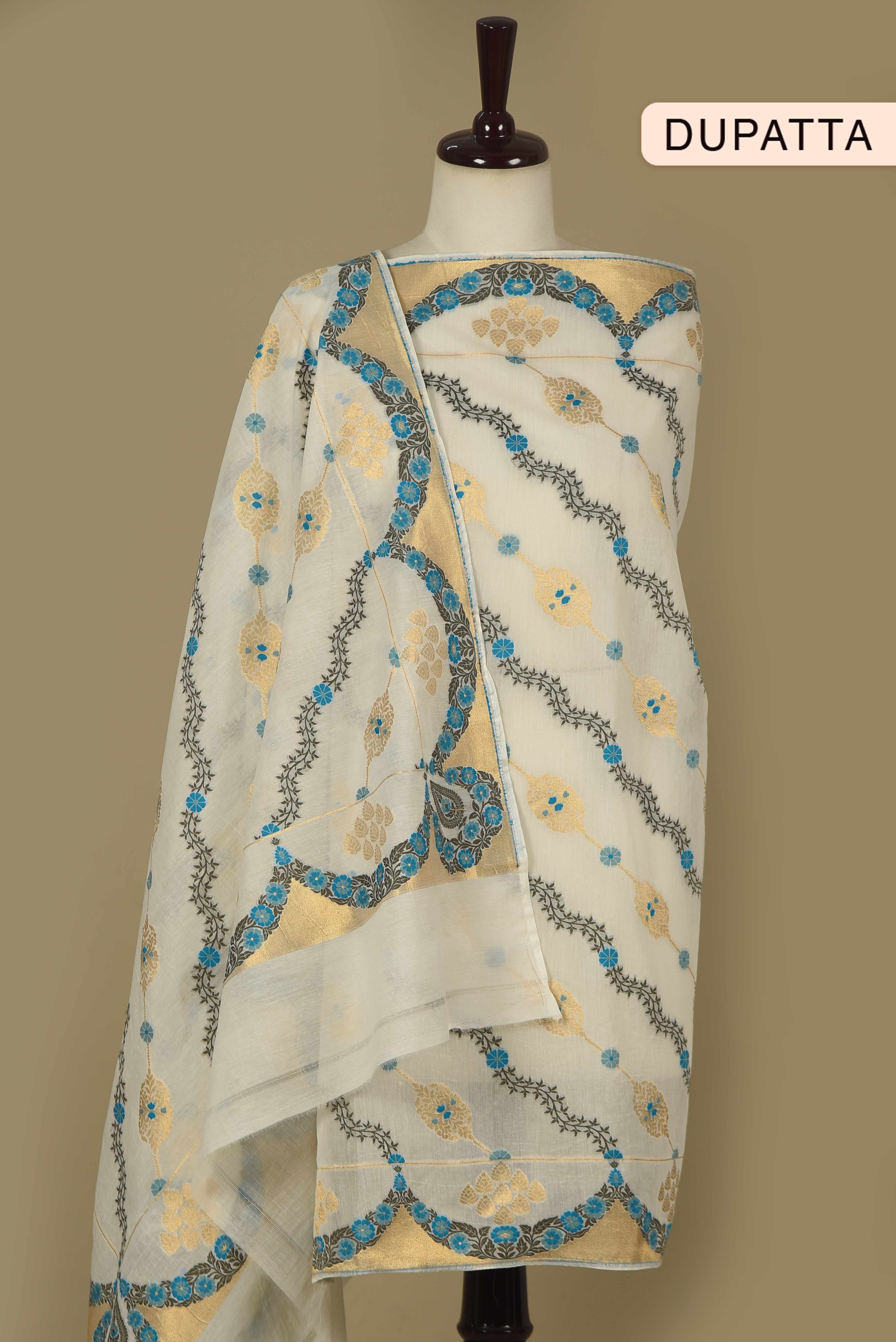 Cream with Turquoise Chanderi Silk Jamdani Woven Unstitched Suit Fabric Set with Chanderi Silk Woven Dupatta.