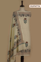 Cream With Brown Mul Cotton Printed Unstitched Suit Fabric Set With Mul Cotton Printed Dupatta