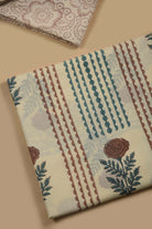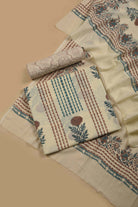 - Discover timeless elegance with this Cream and Brown Mul cotton unstitched suit fabric set, expertly designed for the discerning customer.