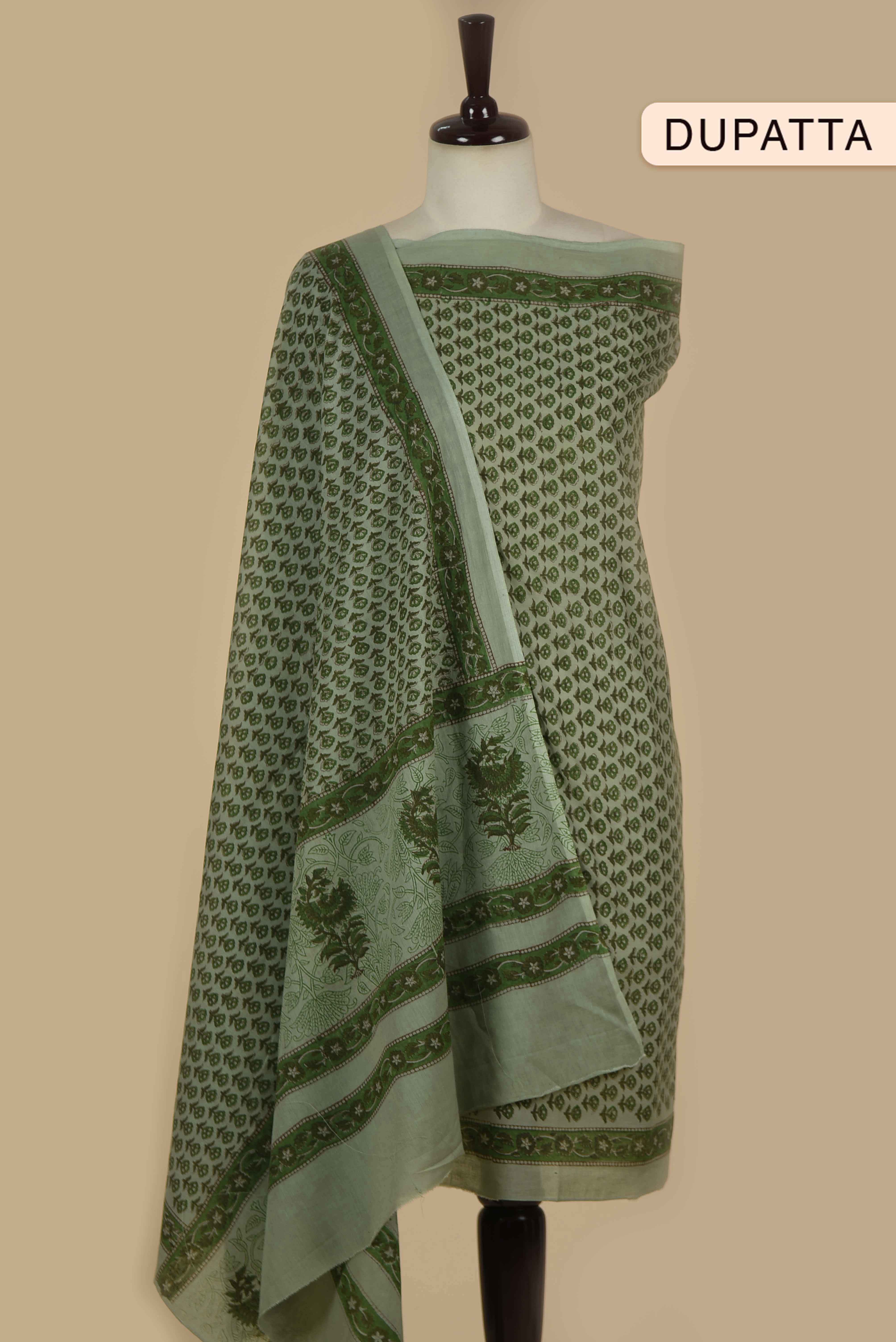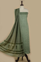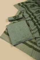 Green Fine Cotton Printed With Embroidery Unstitched Suit Fabric Set With Cotton Printed Dupatta