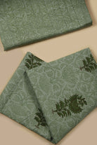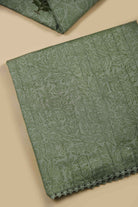 Discover understated luxury with this Green fine cotton suit fabric set, where delicate floral prints meet intricate embroidery work for a refined aesthetic.