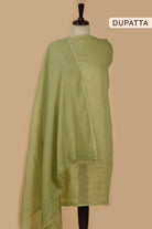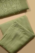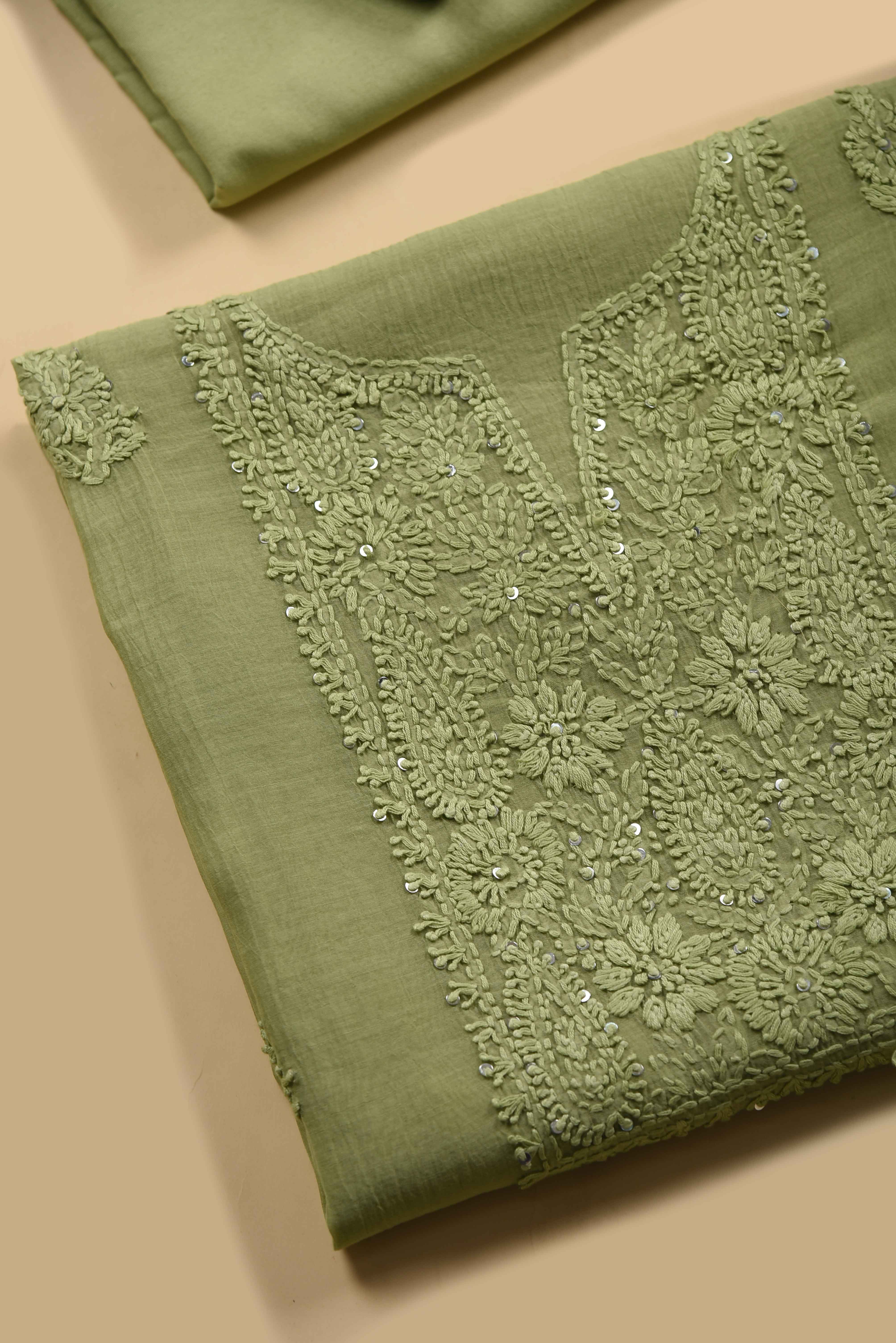 Green Mul Chanderi Embroidered Unstitched Suit Fabric Set With Mul Chanderi Dupatta