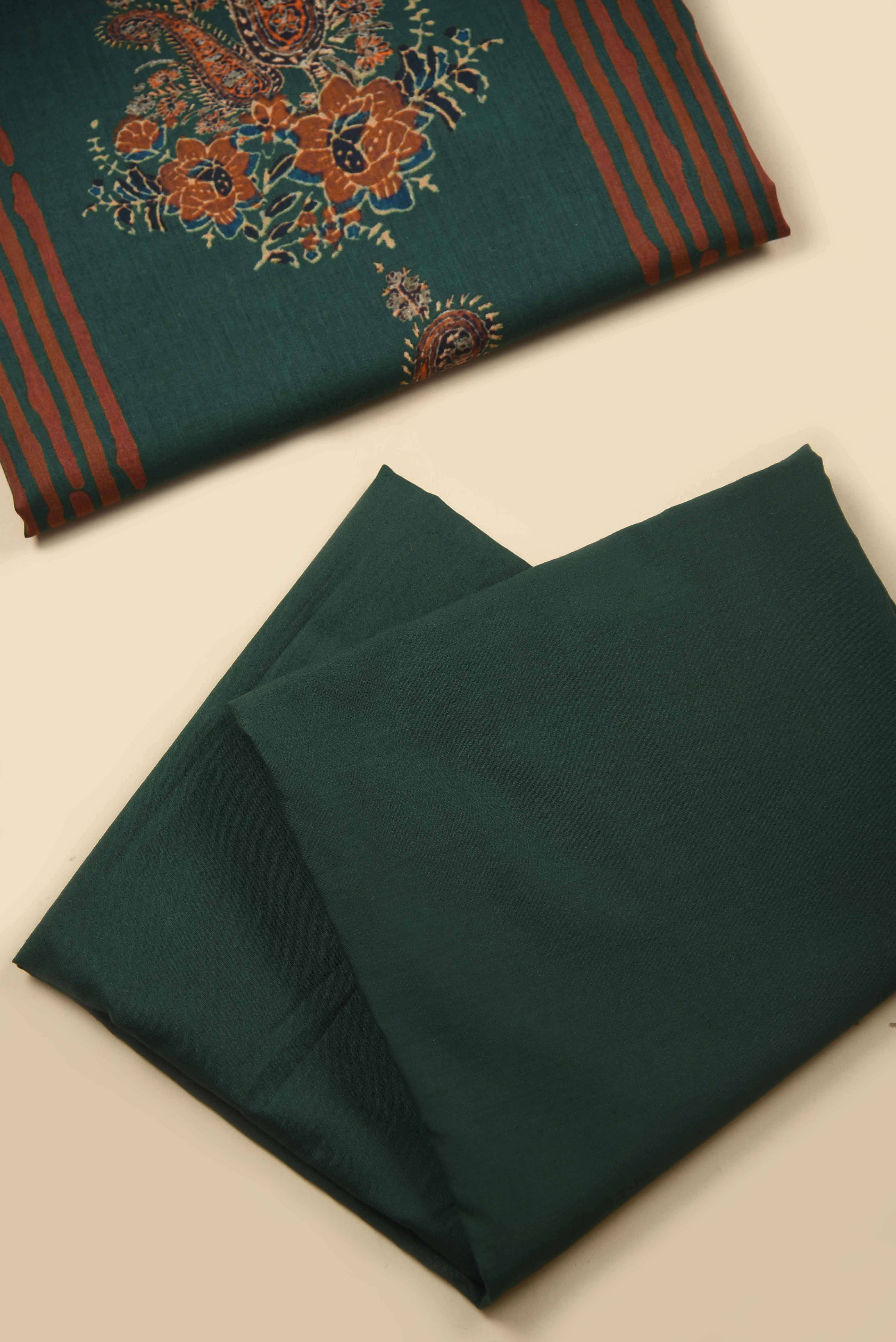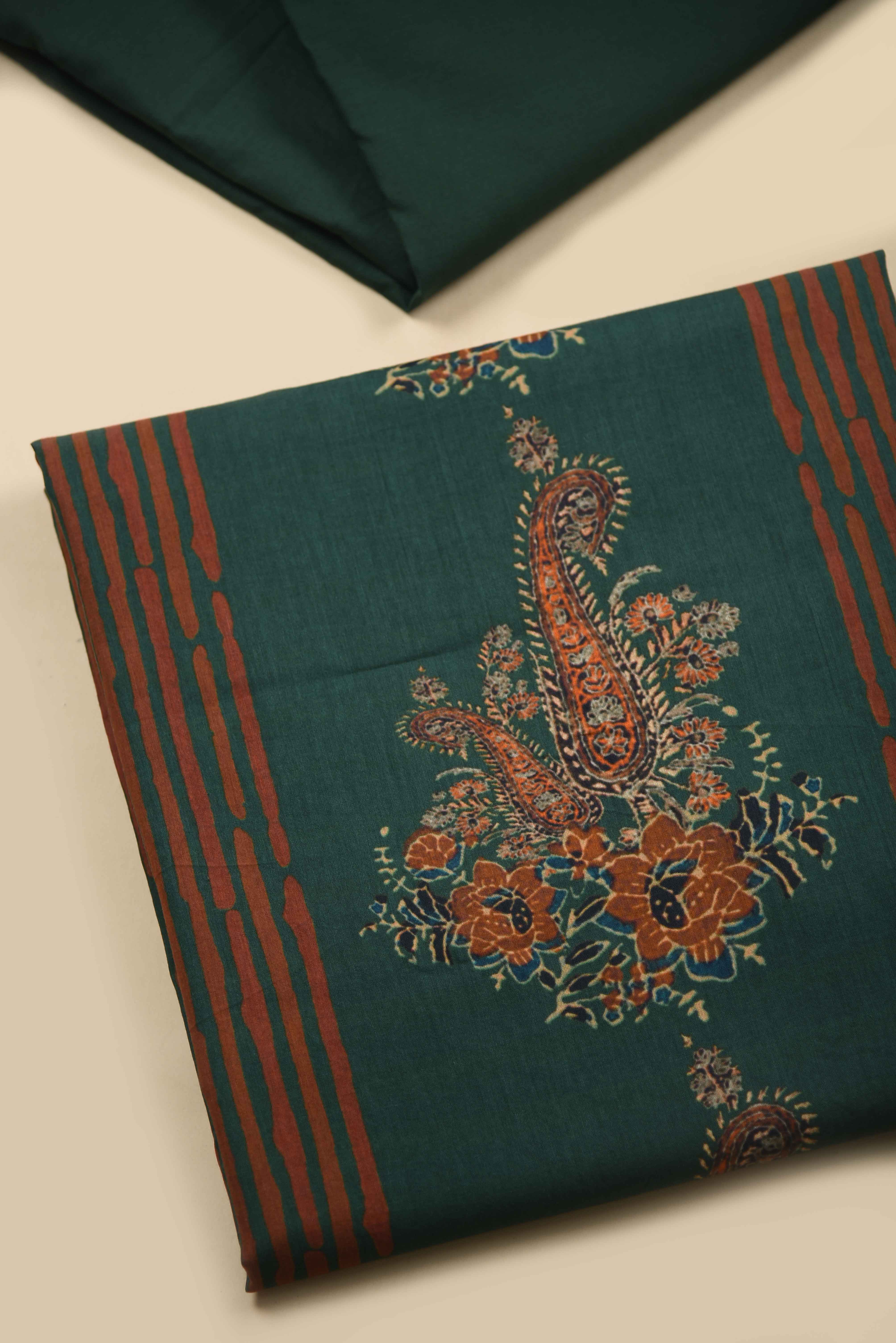 Green Mul Cotton Printed Unstitched Suit Fabric Set With Cotton Printed Dupatta