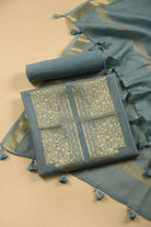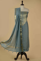 Light Blue Chanderi Silk Woven Unstitched Suit Fabric Set With Chanderi Woven With Embroidered Dupatta