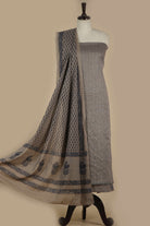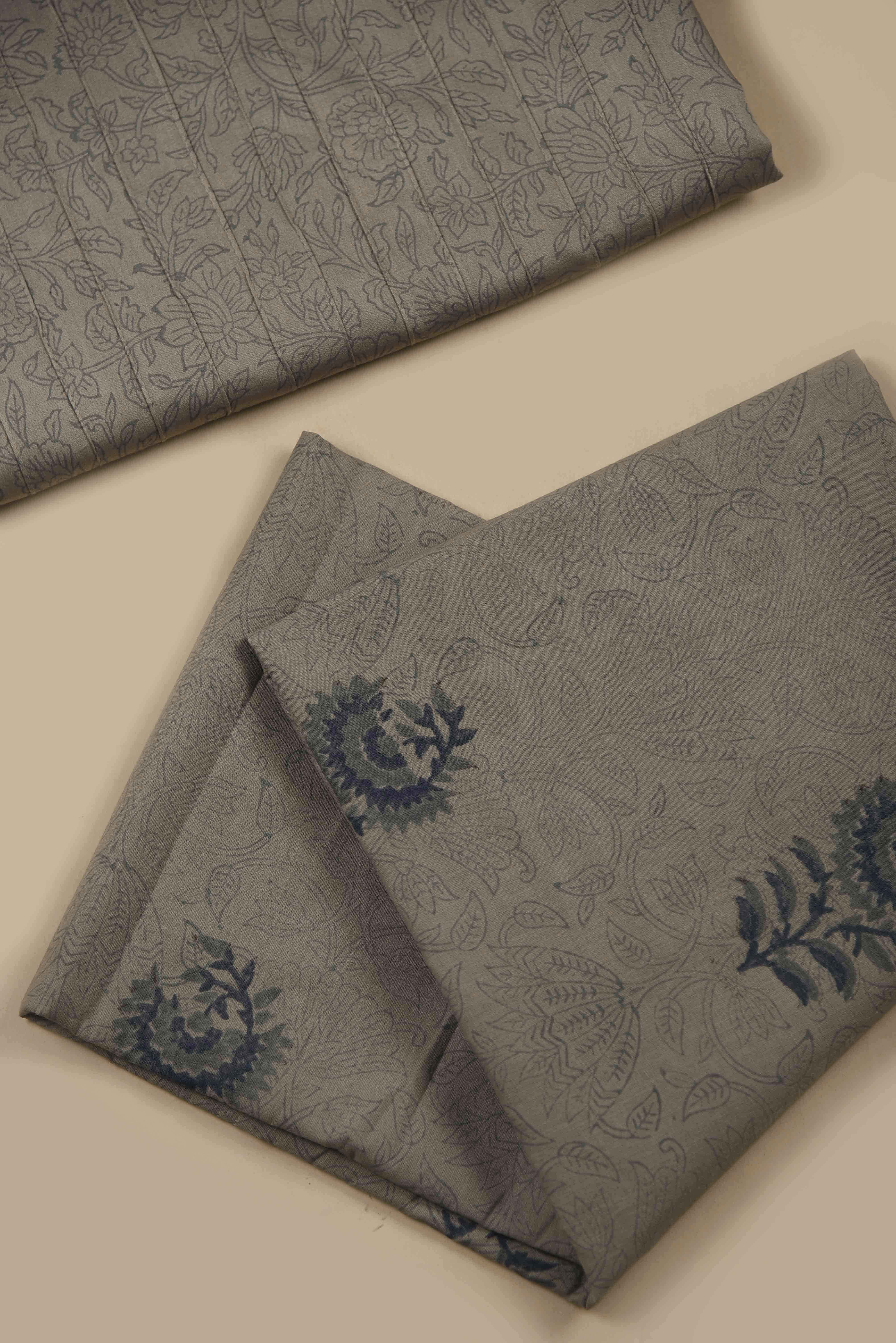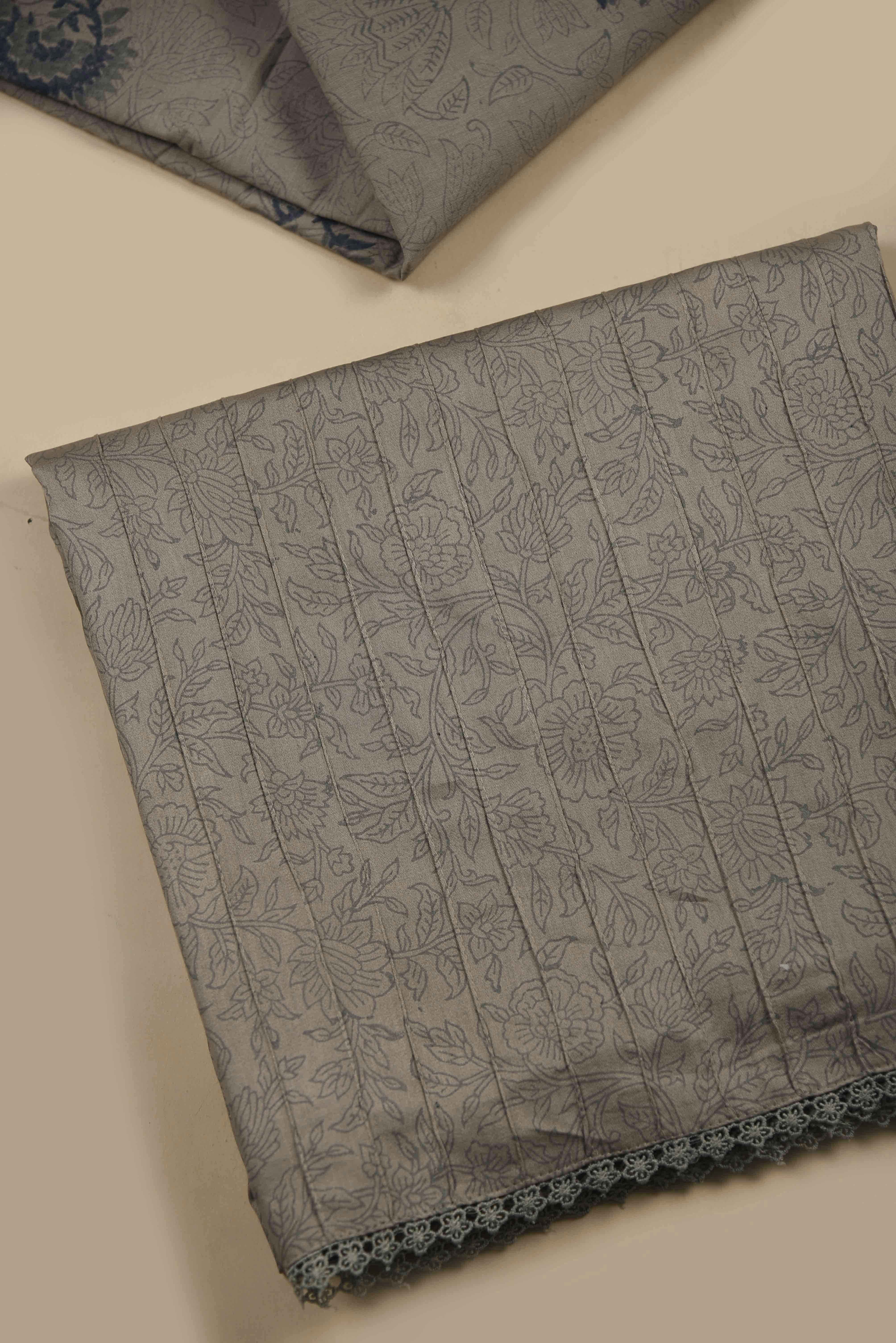 Light Grey Fine Cotton Printed With Embroidery Unstitched Suit Fabric Set With Cotton Printed Dupatta