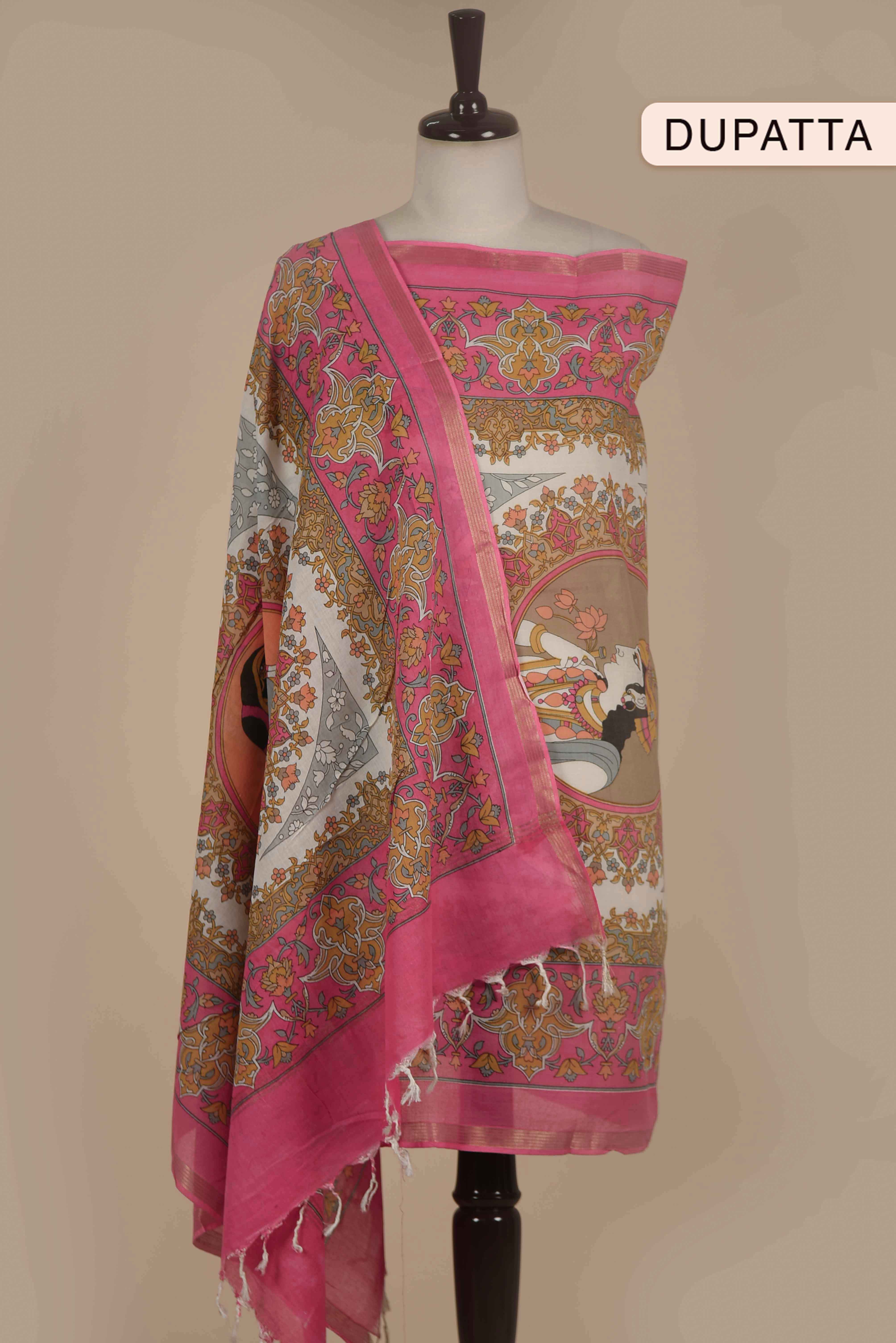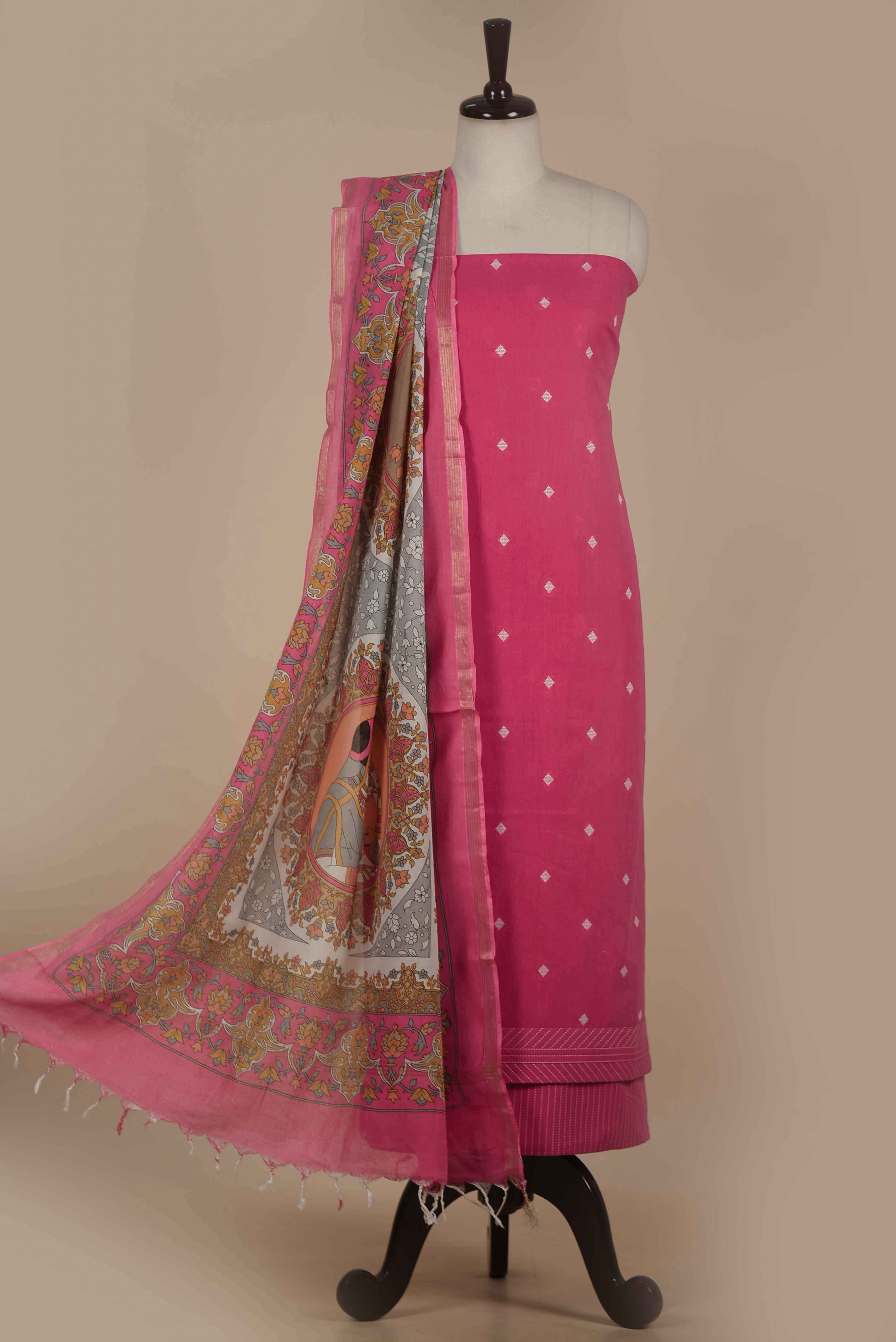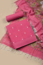 Pink Pure Cotton Woven With Embroidery Unstitched Suit Fabric Set With Cotton Printed Dupatta