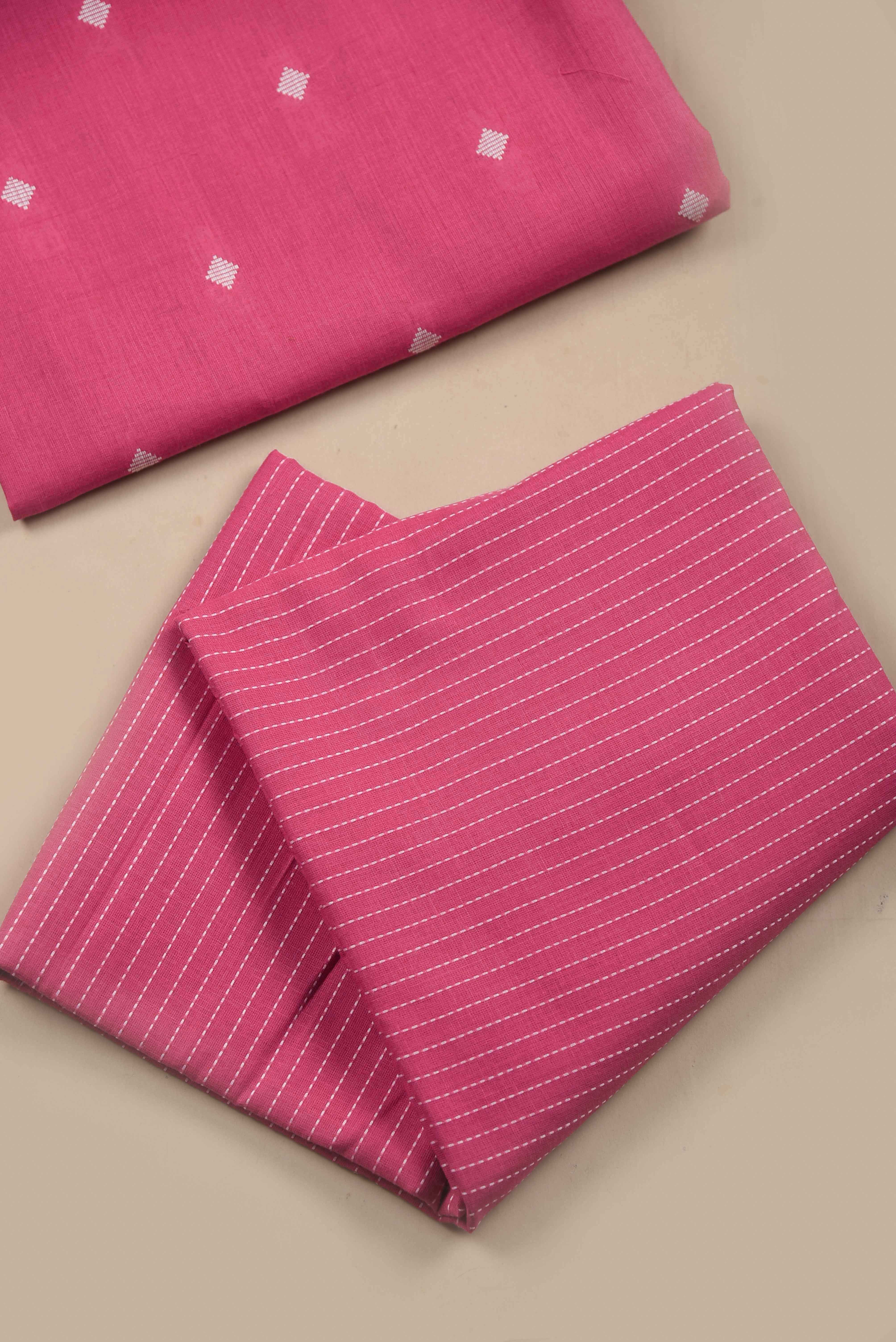 - Transform your fabric collection with this sophisticated Pink pure cotton suit set, featuring hand-woven construction enhanced by delicate embroidery work.