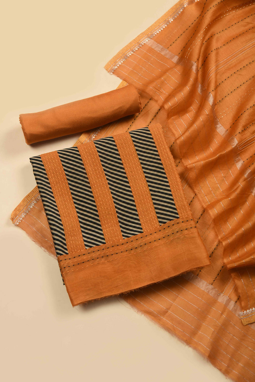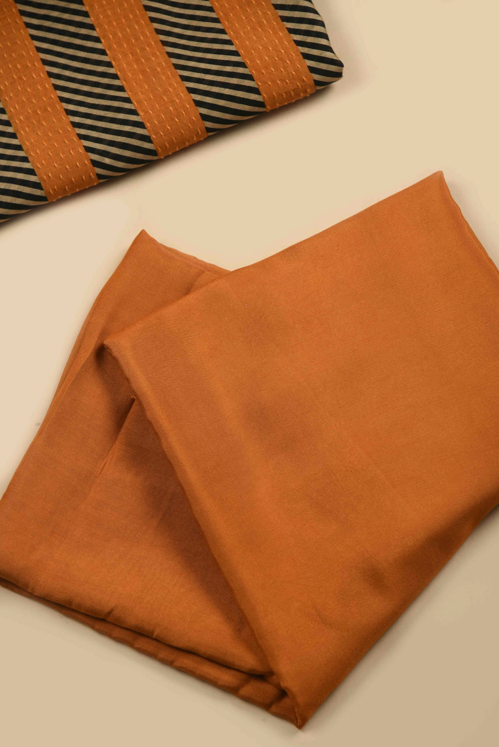 Rust Chanderi Silk Blend Embroidered Unstitched Suit Fabric Set With Chanderi Silk Blend Embroidered Dupatta