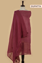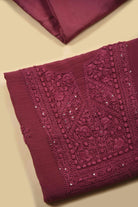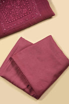 Wine Mul Chanderi Embroidered Unstitched Suit Fabric Set With Mul Chanderi Dupatta