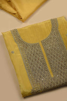 Yellow Crushed Silk Embroidered Unstitched Suit Fabric Set with Silk Embroidered Dupatta