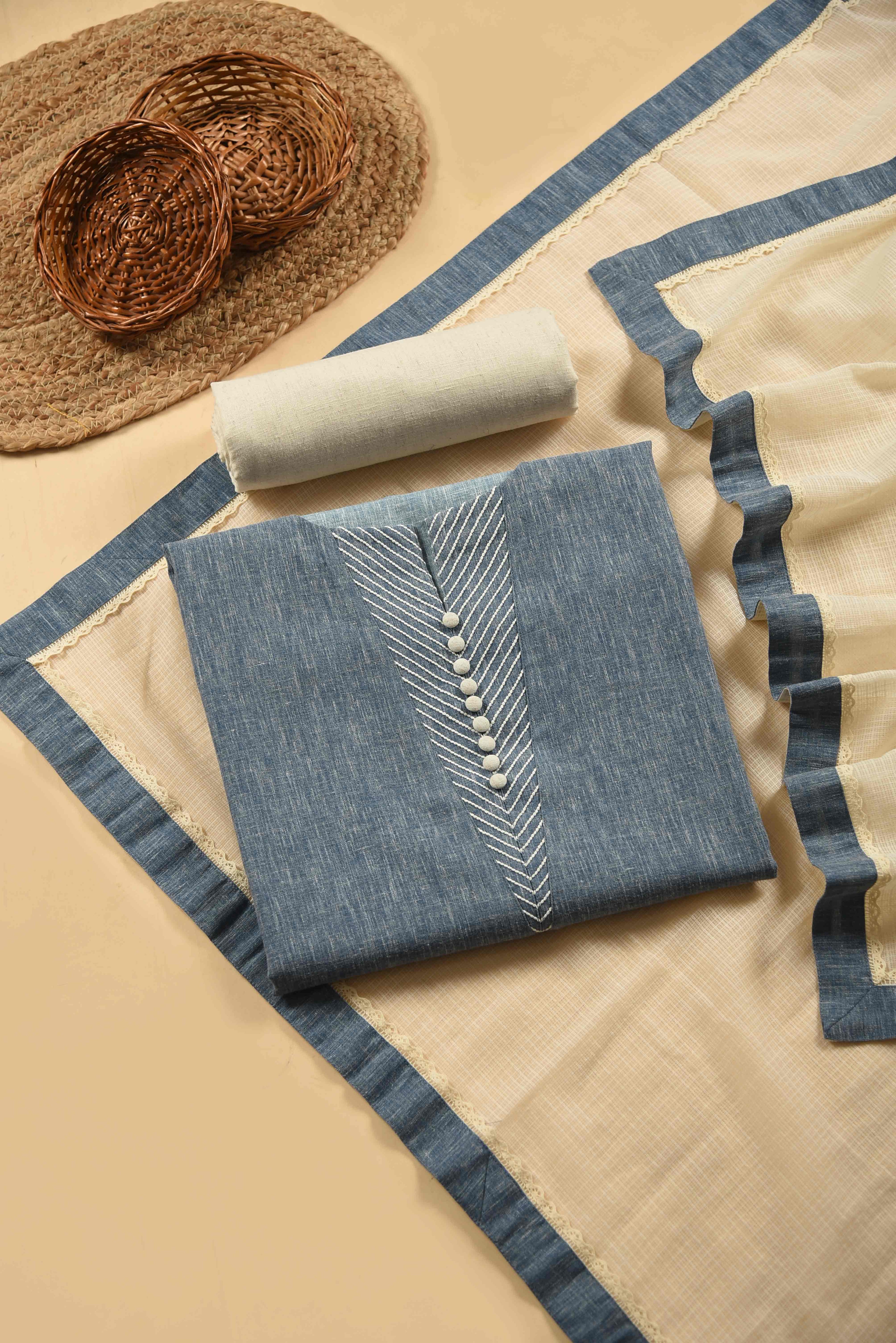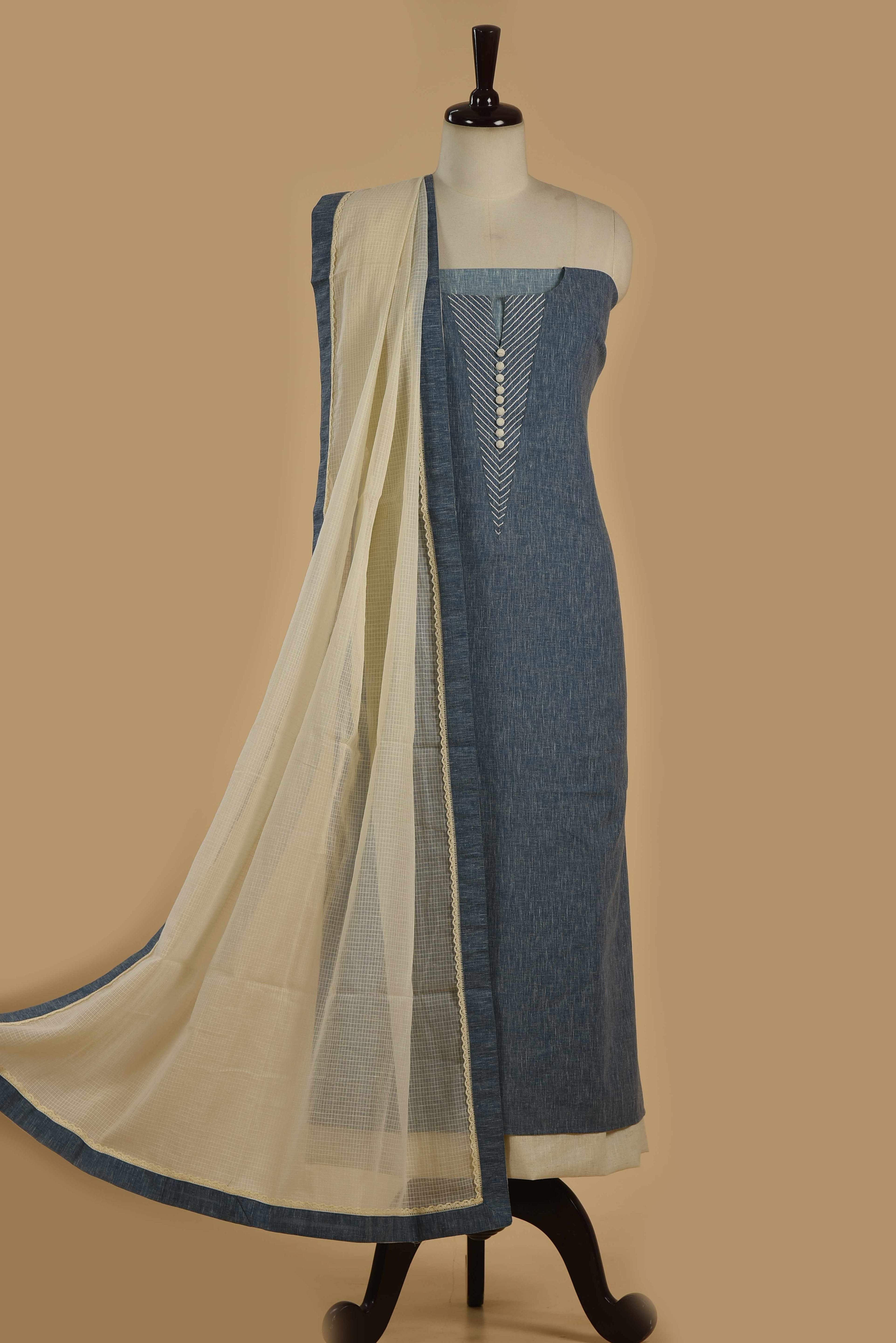 Cool comfort meets classic style with linen suiting. This natural fiber boasts exceptional breathability, keeping you comfortable on hot days. Linen dress material is inherently wrinkle resistant making it a low-maintenance choice, perfect for creating versatile and effortlessly stylish attires.