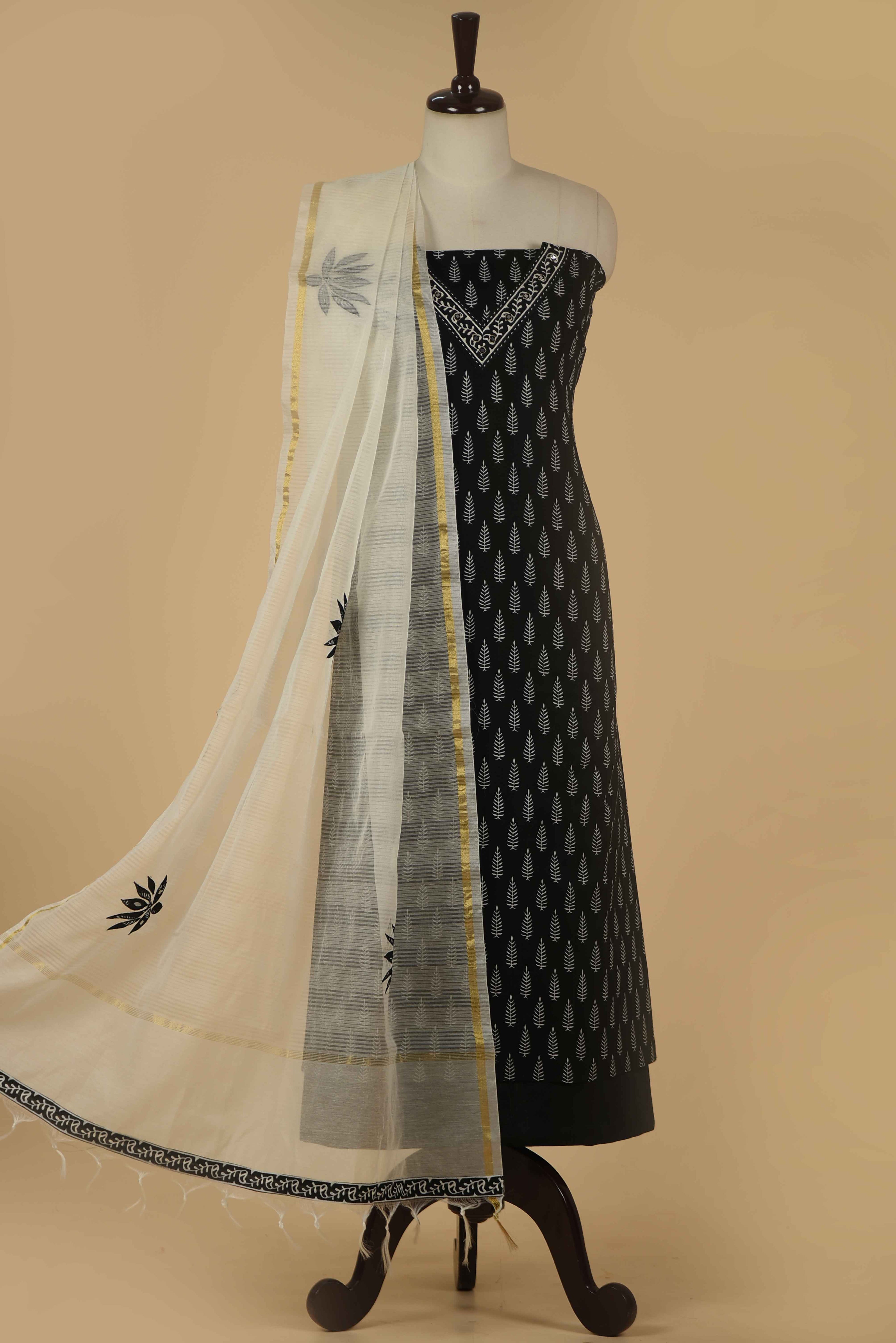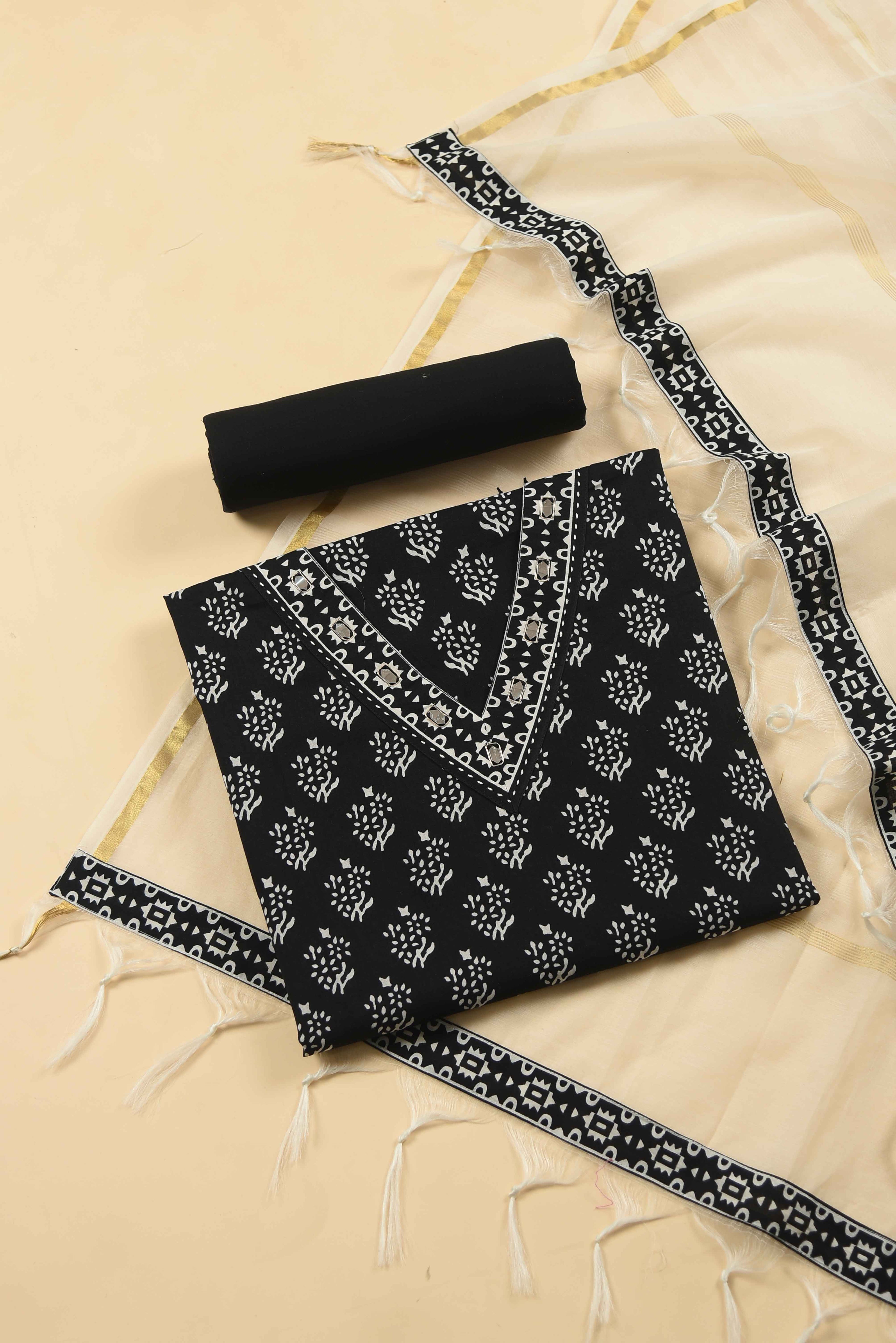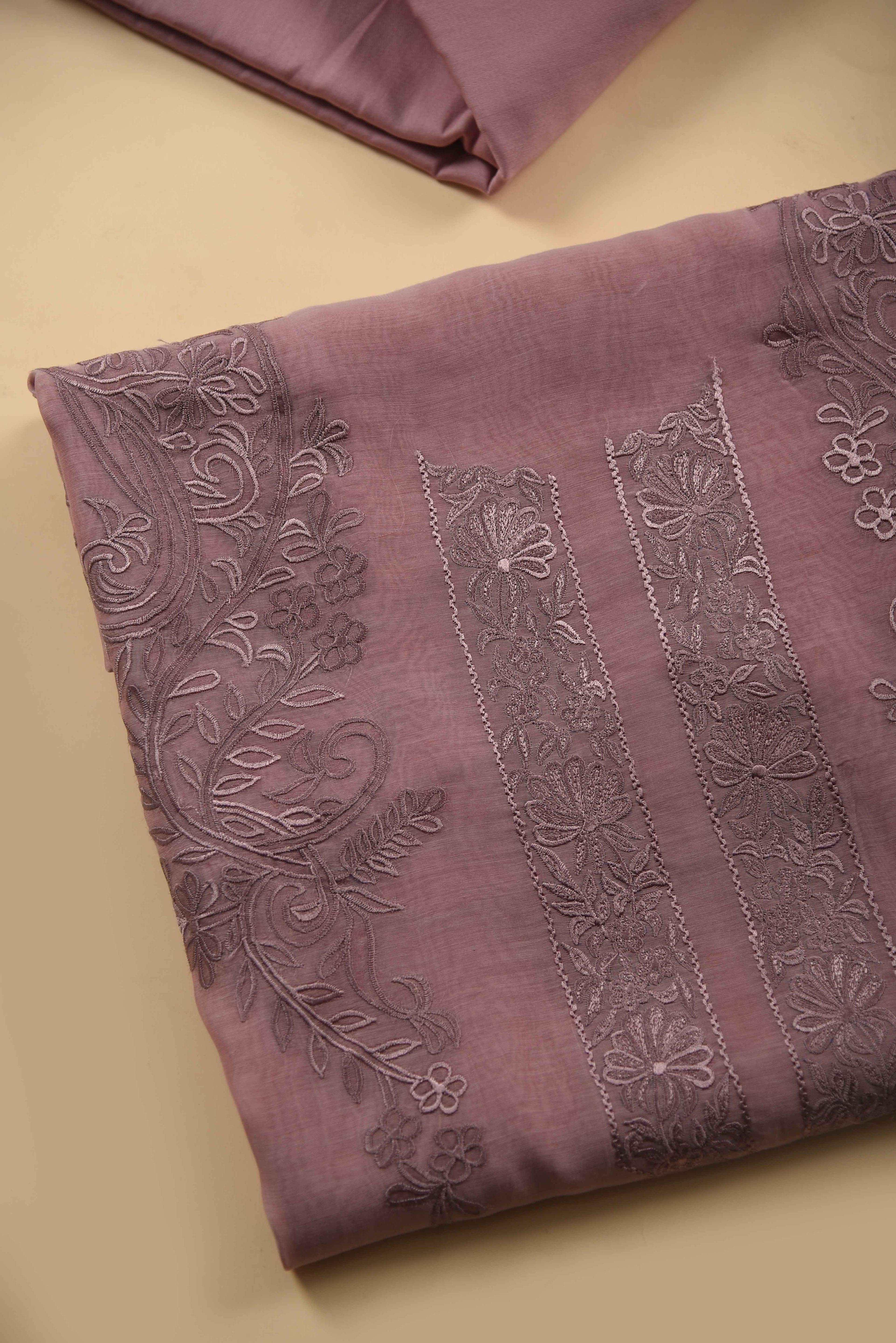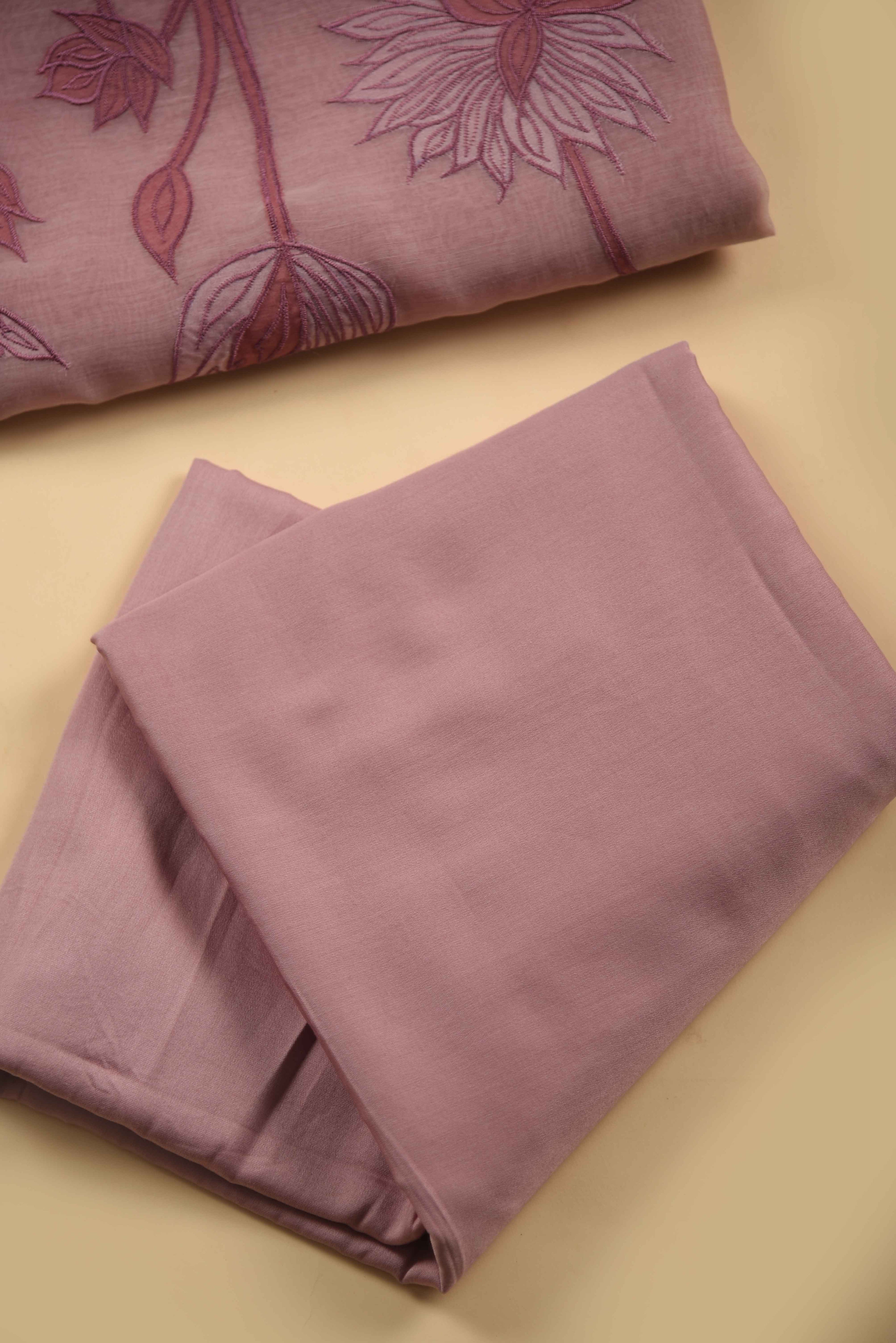 Red Mul chanderi Embroidered Unstitched Suit Fabric Set With Mul Chanderi Embroidered Dupatta
