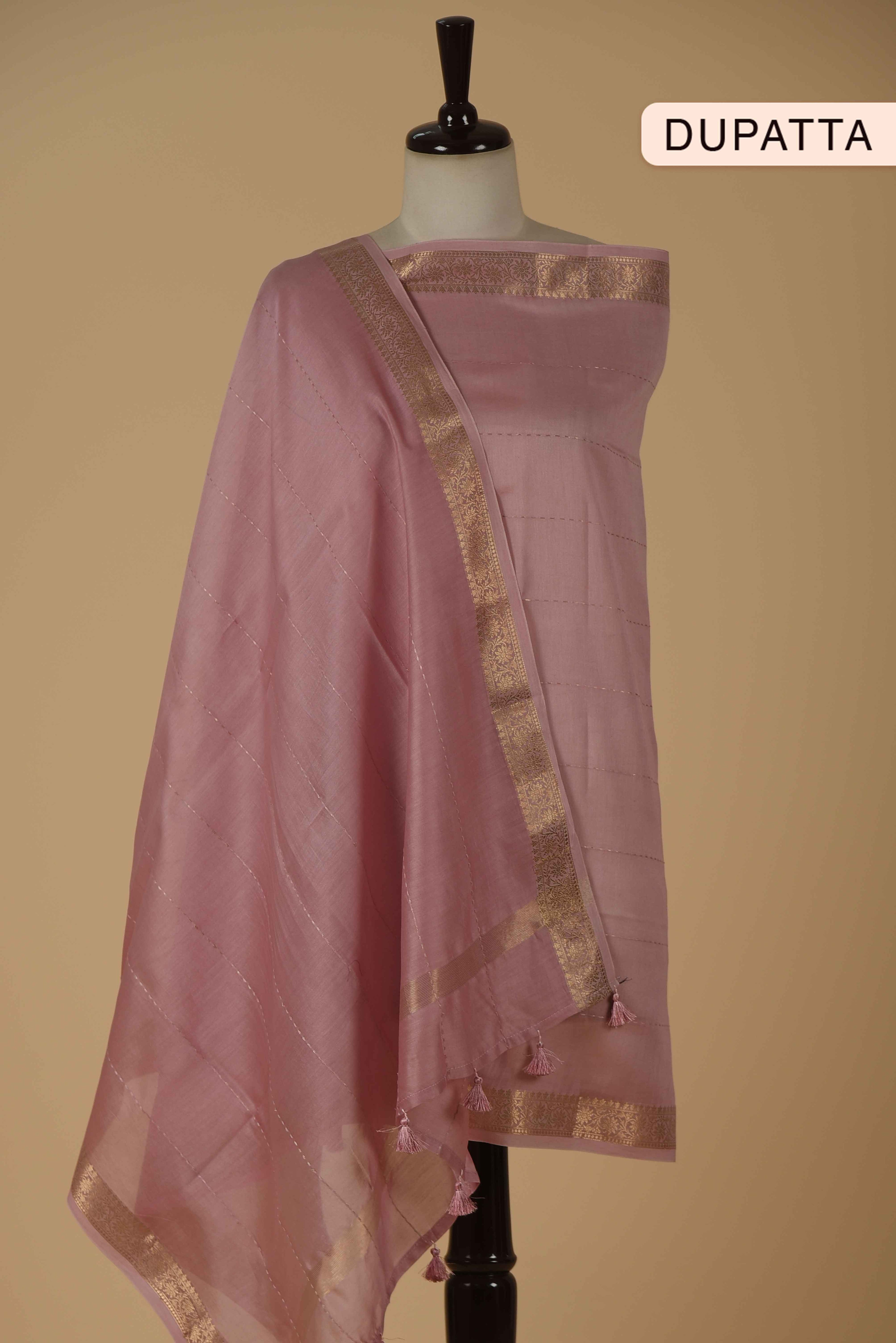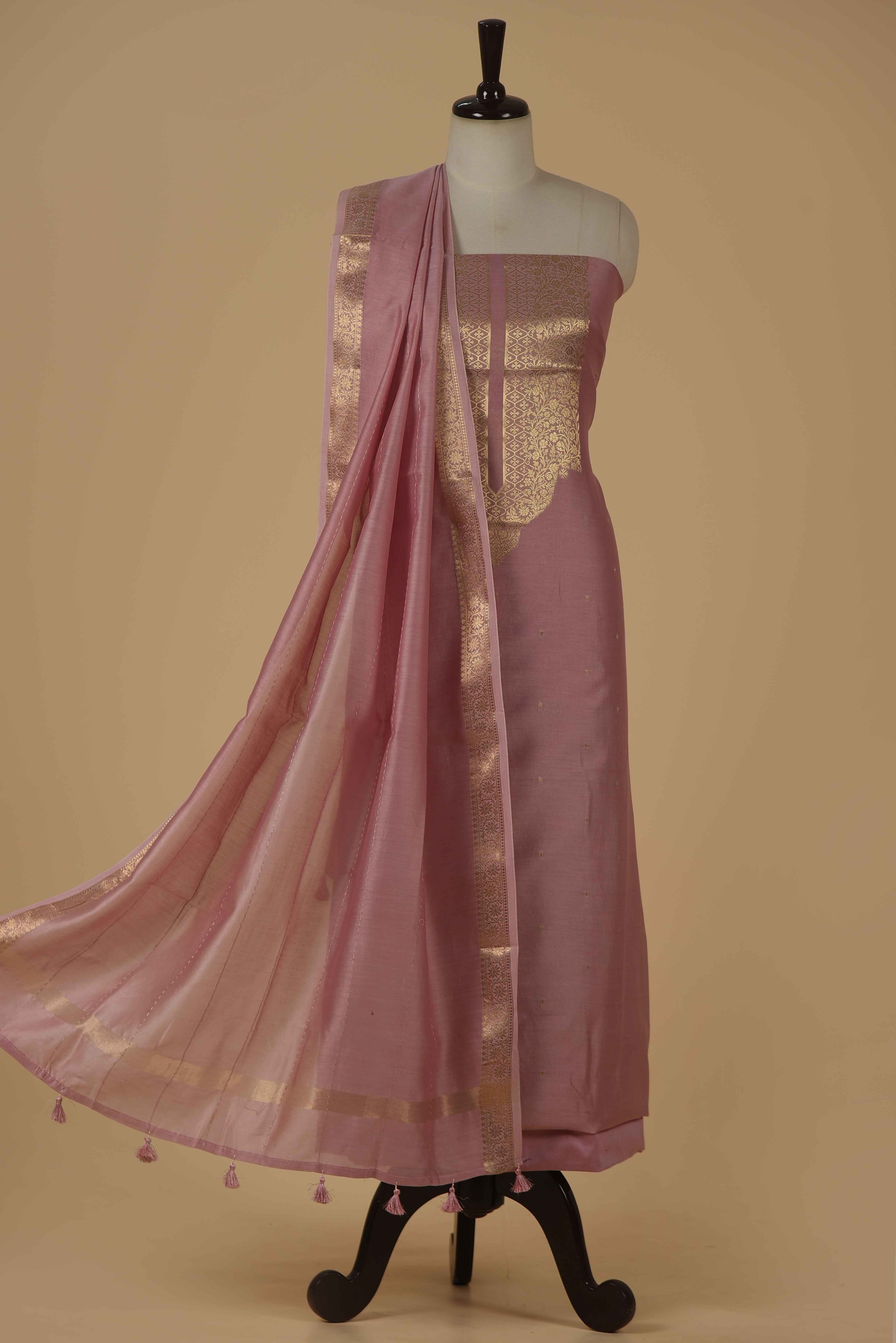 Maroon Banarasi Chanderi Woven Unstitched Suit Fabric Set With Banarasi Chanderi Woven Dupatta