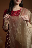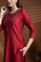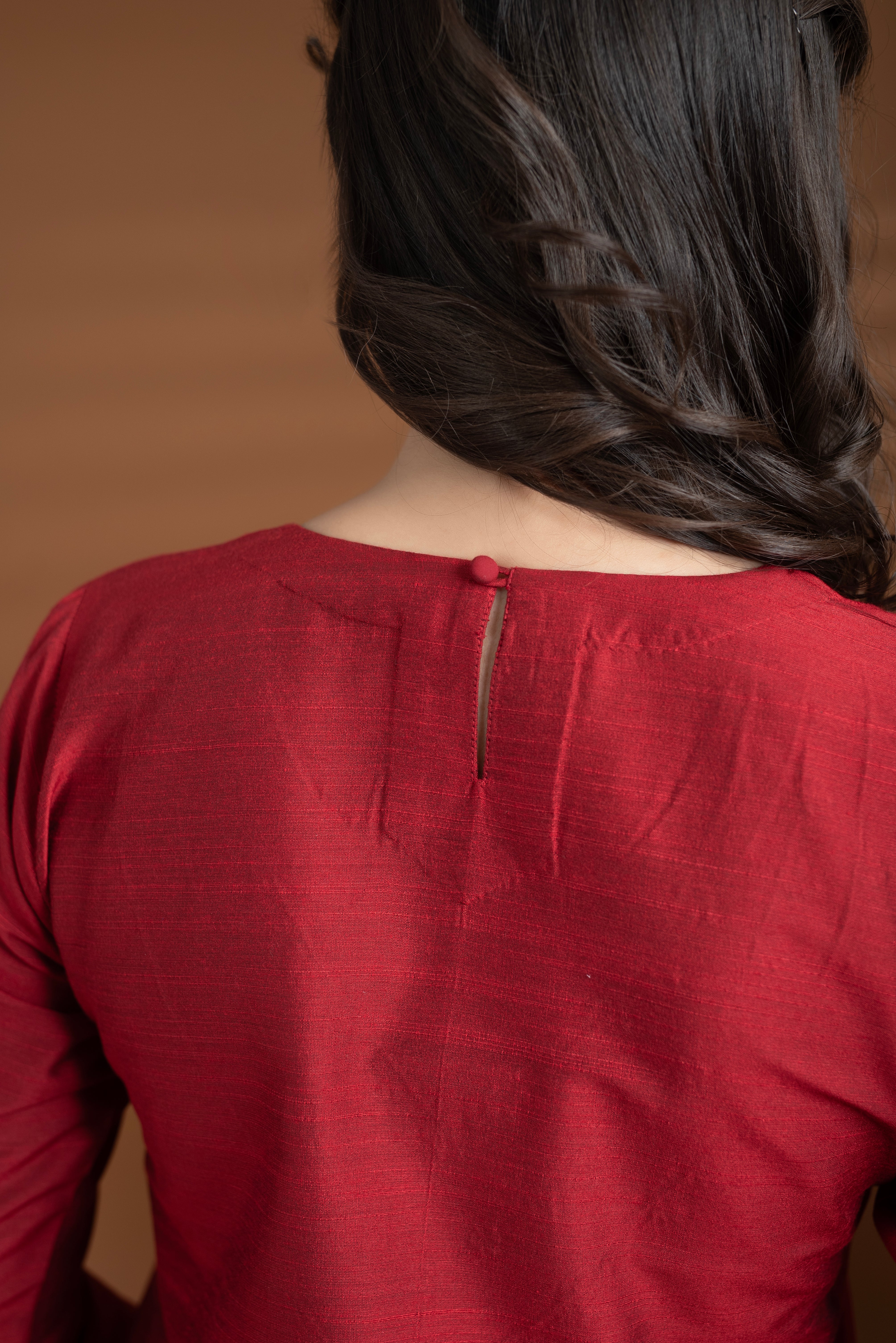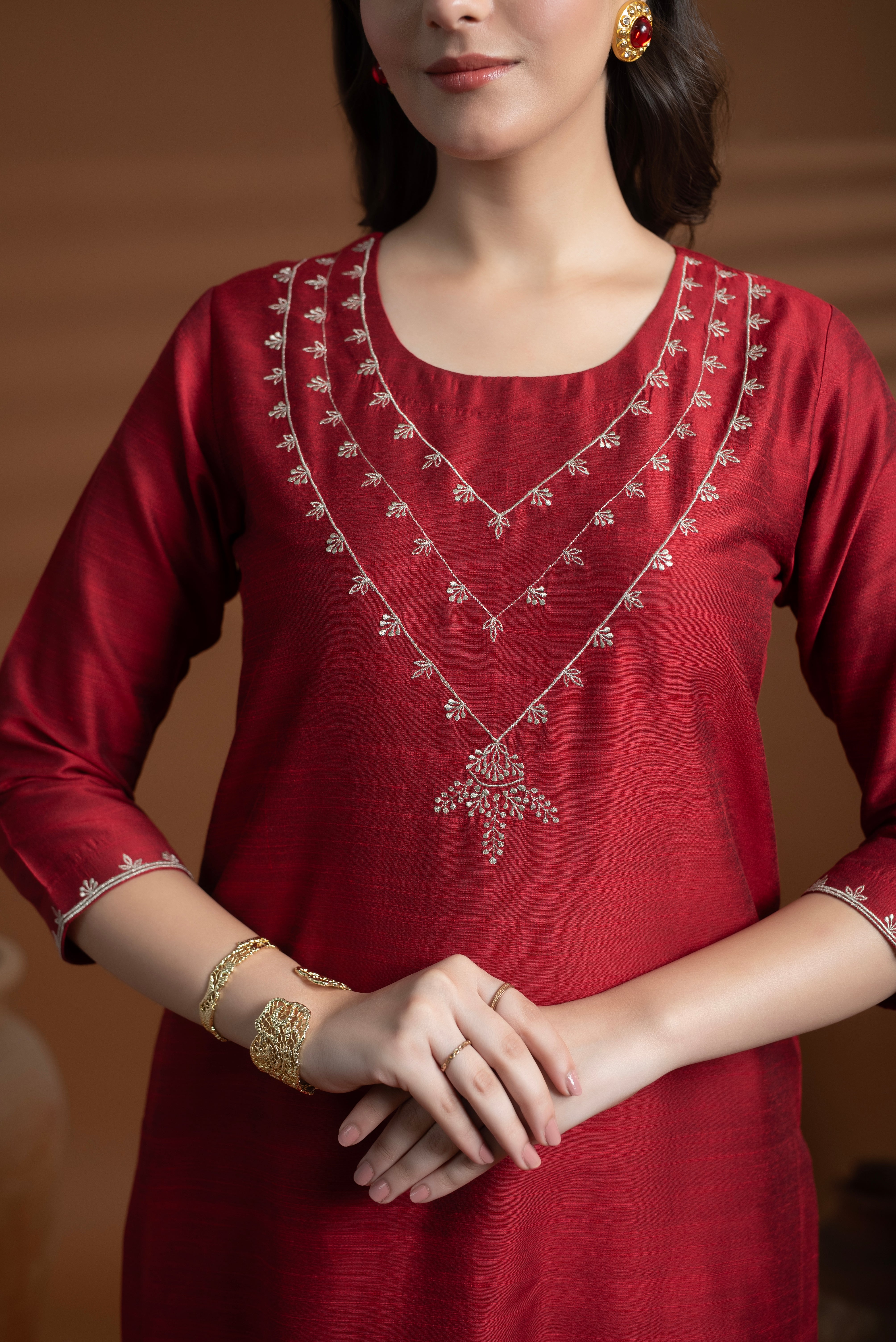 Red Cotton Silk Zari Work Kurta Set – Regular Fit