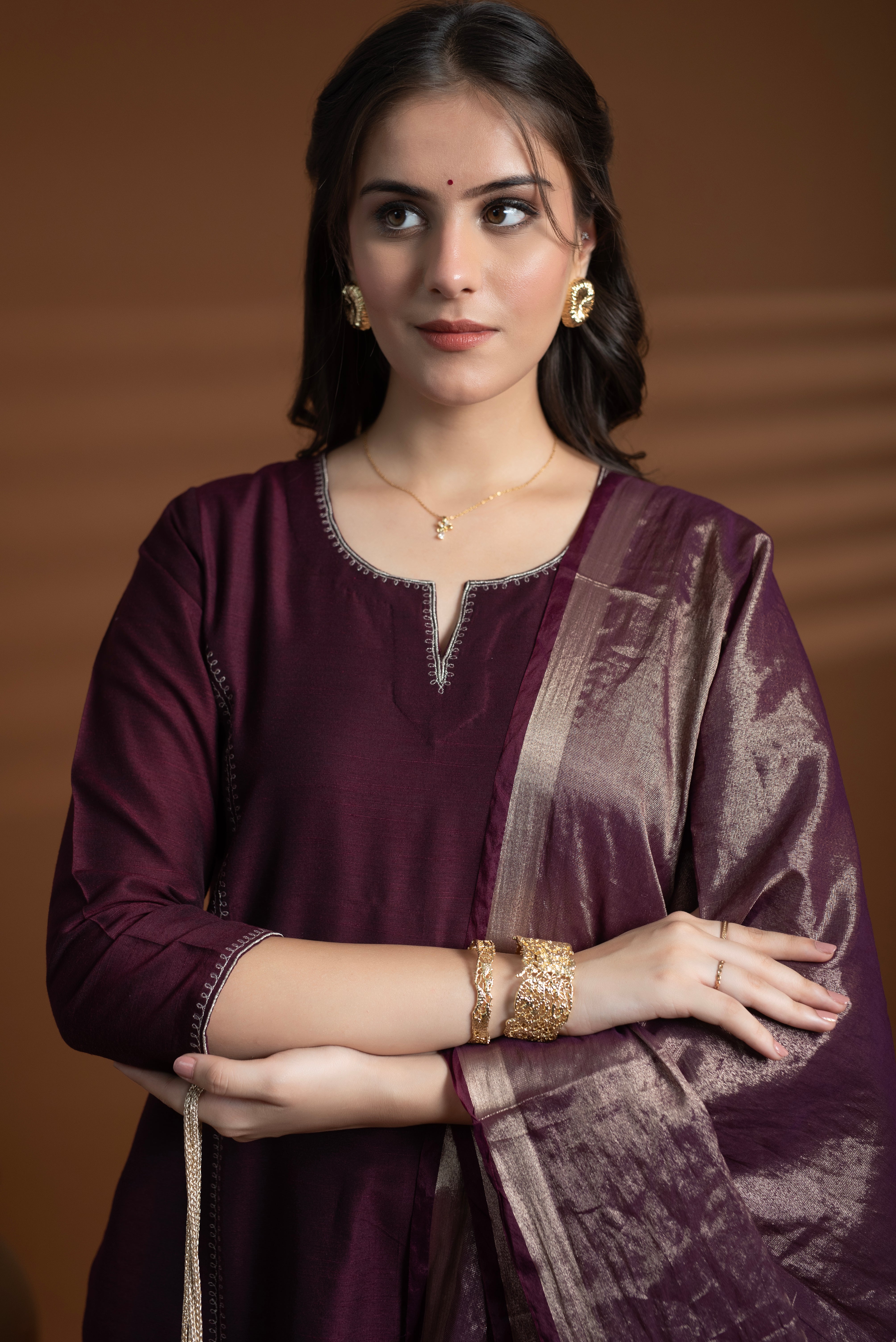 Add a touch of timeless charm to your ethnic look with this Wine Tissue Dupatta.