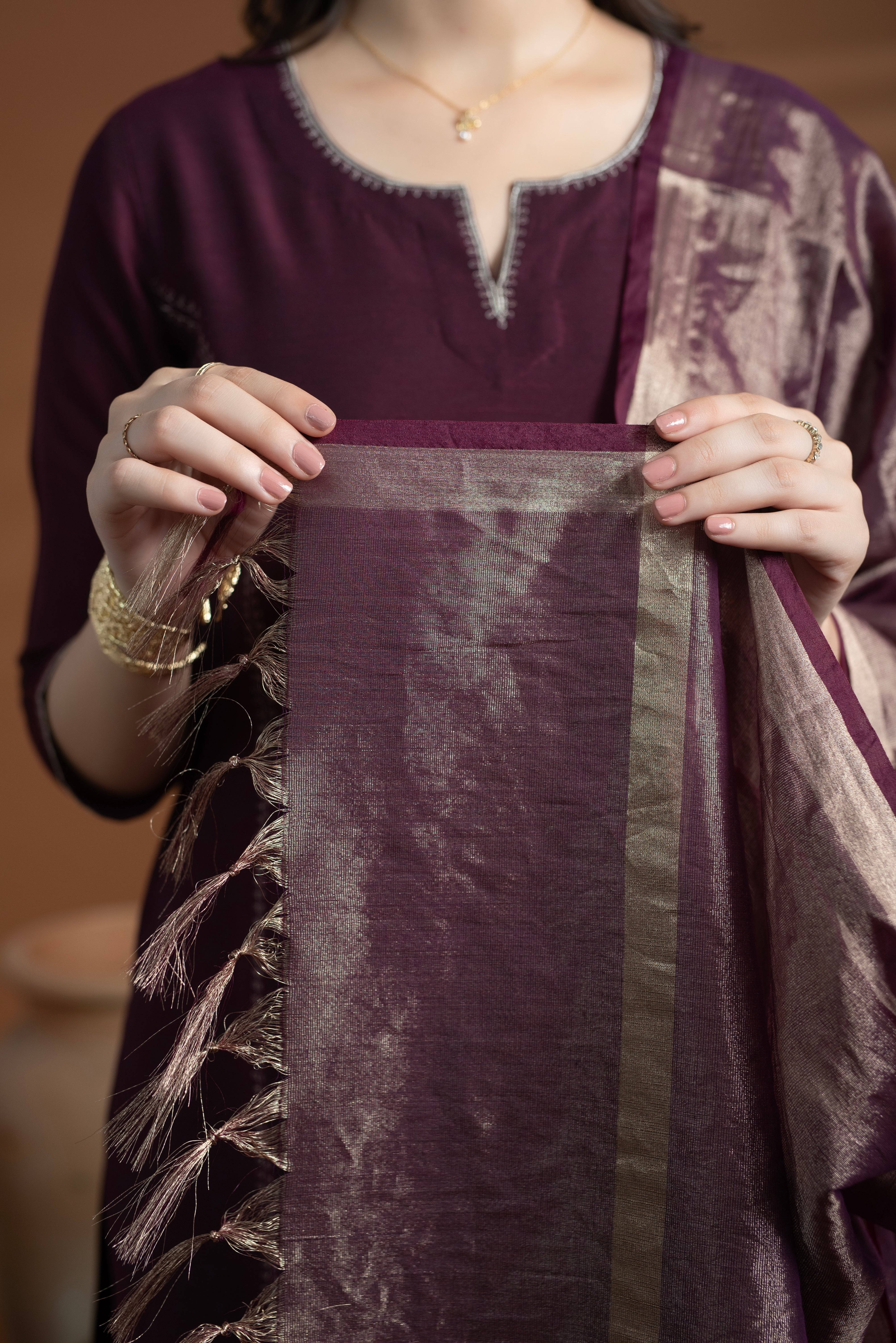 Wine Tissue Zari Dupatta