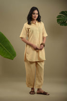 Pastel Yellow Cotton Linen Blend Co-ord Set With Pleated Pants - Relaxed Fit