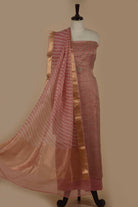 - This unstitched suit set features breathable Pink organza silk fabric adorned with intricate hand-printed designs and delicate hand embellishments.