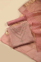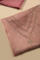 Pink Organza Silk Printed & Hand Embellished Unstitched Suit Set with Organza Silk Dupatta