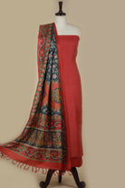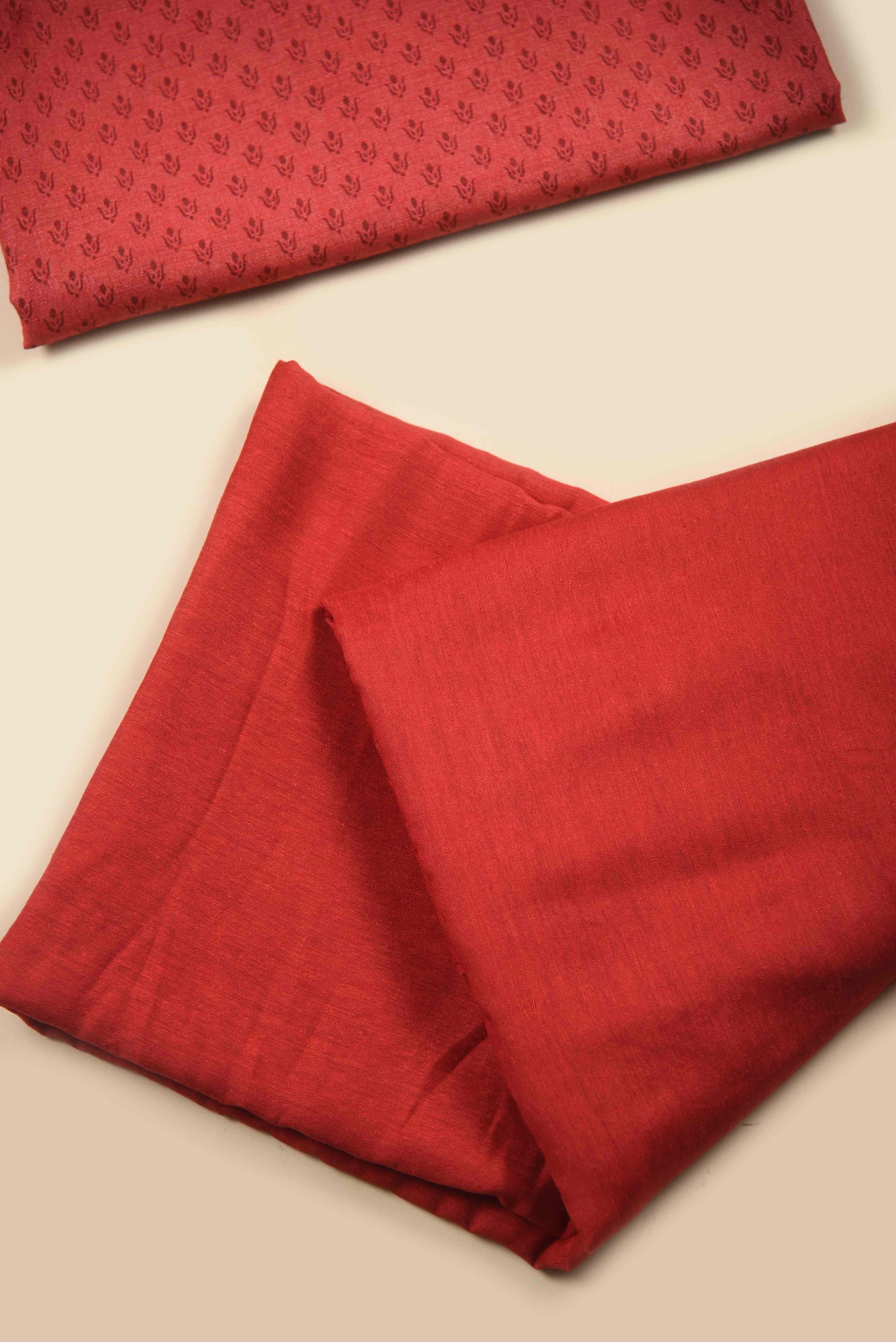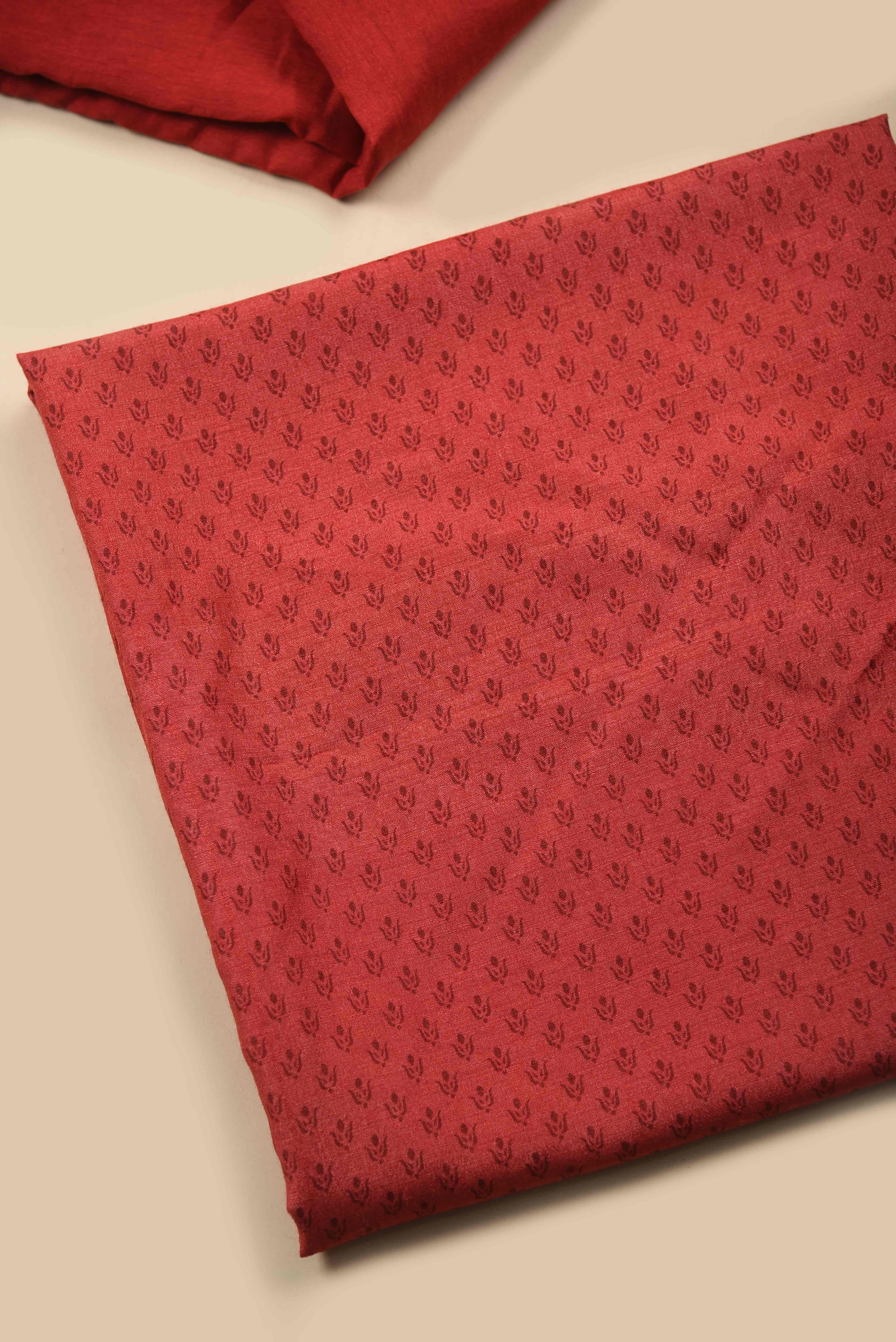 - Elevate your wardrobe with this exquisite Red Tussar Silk Printed Unstitched Suit Fabric Set, a sophisticated addition to your casual collection.