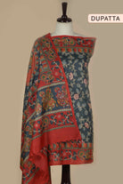 Red Tussar Silk Printed Unstitched Suit Fabric Set With Tussar Silk Embroidered Dupatta