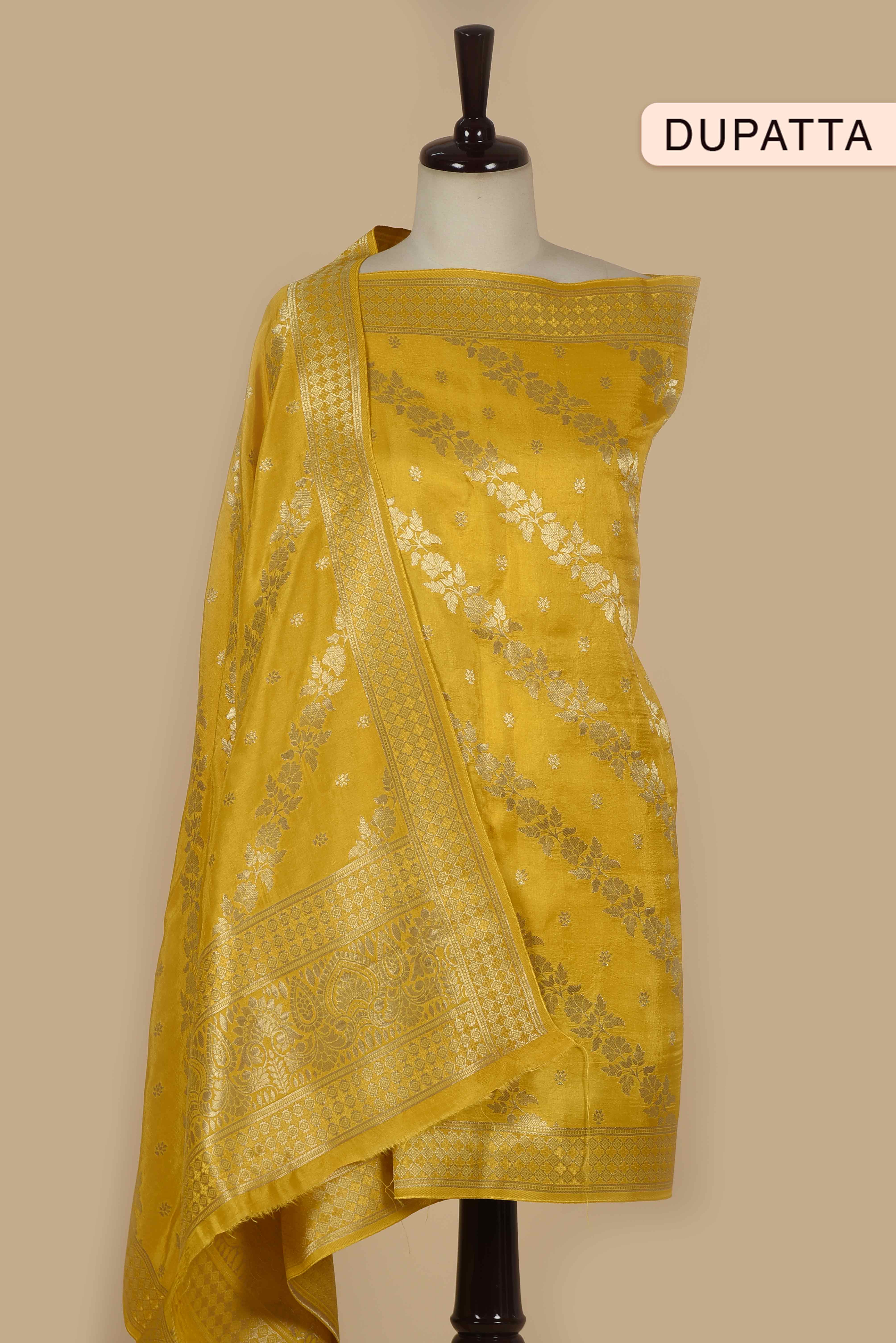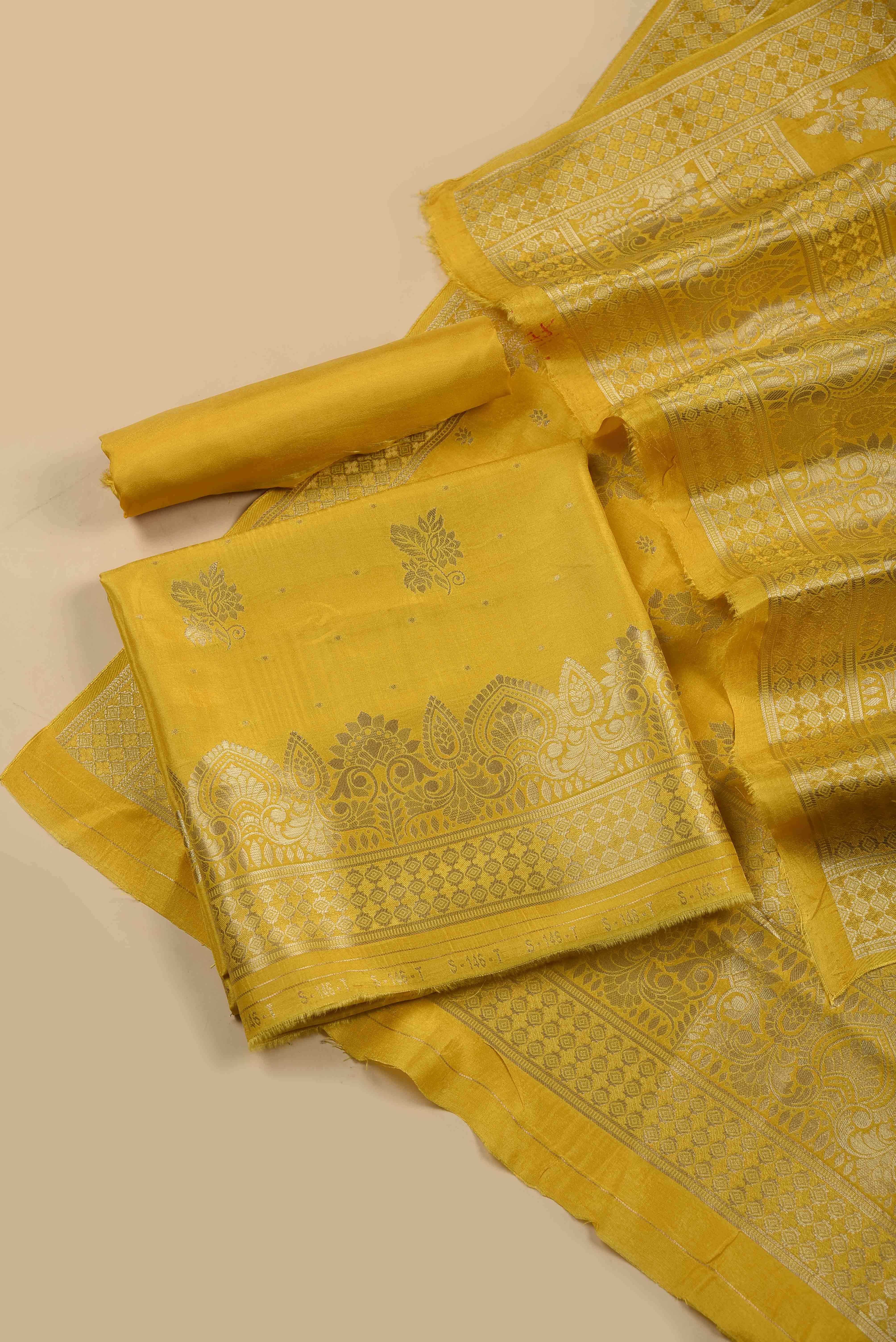 Yellow Silk Viscose Woven With Unstitched Suit Fabric Set With Silk Viscose Woven Dupatta